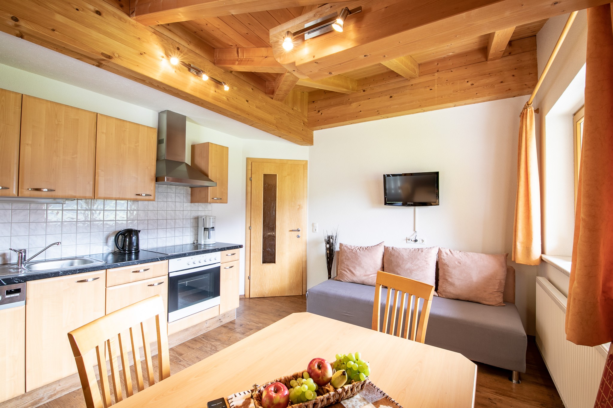 Unser Haus steht an einer sonnigem Hanglage mit unverbautem Blick auf die Zillertaler Berge. Die Wohnungen sind alle neu und mit viel Holz eingerichtet (Parkettboden, Holzdachstuhl, Massivholzmöbel). Die Wohnungen verfügen jeweils mit 2 Schlafzimmern mit SAT/TV, einem oder zwei Bädern, Wohnküche mit Sofa, Küchenzeile, Essecke, SAT/TV und Balkon oder Terrasse. W-LAN kostenlos.