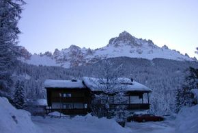 Unsere Sonneterrasse mit Blick auf die Skipisten von Obereggen 31.01. 2015