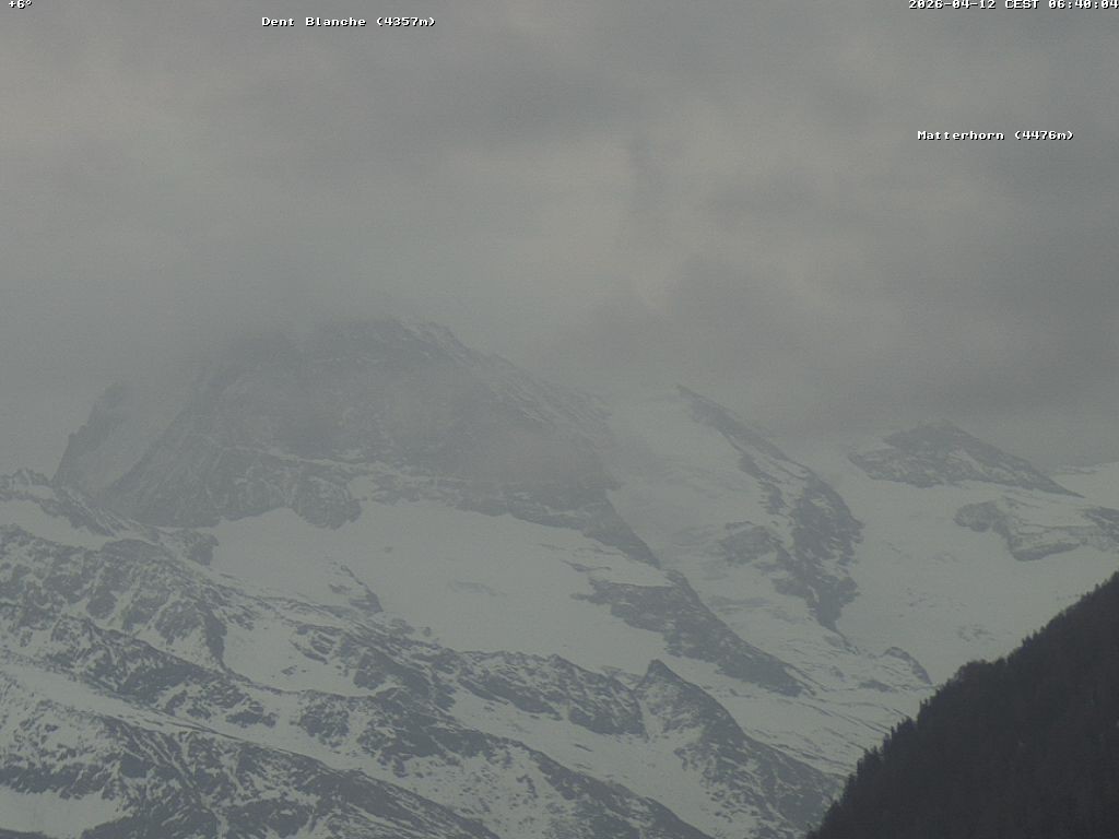 Archiviertes Webcam Bild: 4 Vallées: Blick Richtung Dent Blanche und Matterhorn am 12.04.2026 um 04:14 Uhr 04:00