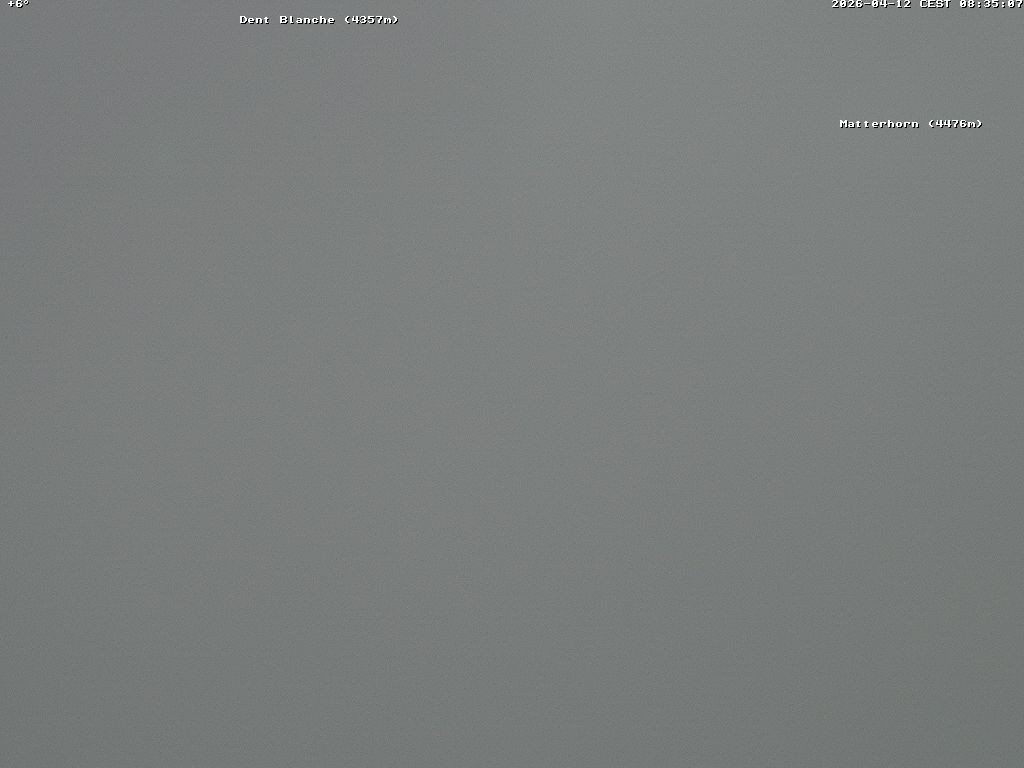 Archiviertes Webcam Bild: 4 Vallées: Blick Richtung Dent Blanche und Matterhorn am 12.04.2026 um 06:14 Uhr 06:00