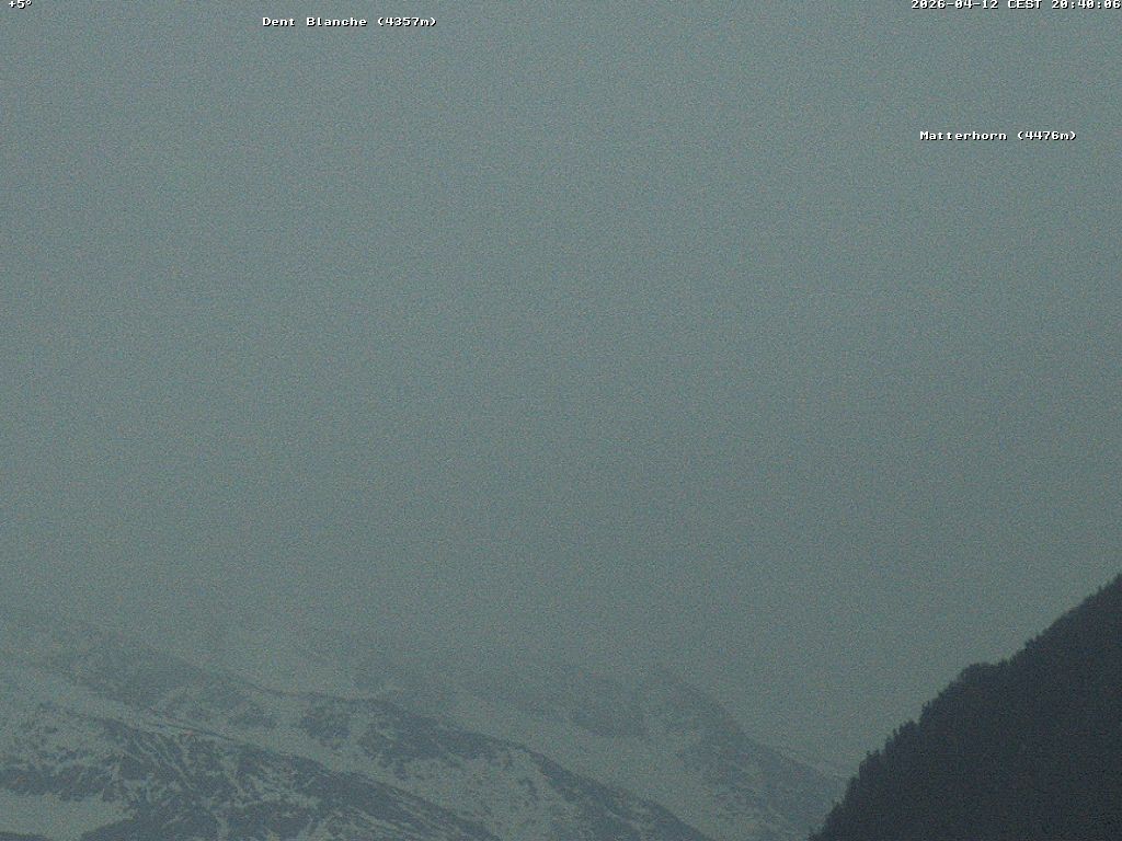 Archiviertes Webcam Bild: 4 Vallées: Blick Richtung Dent Blanche und Matterhorn am 12.04.2026 um 20:14 Uhr Aktuell