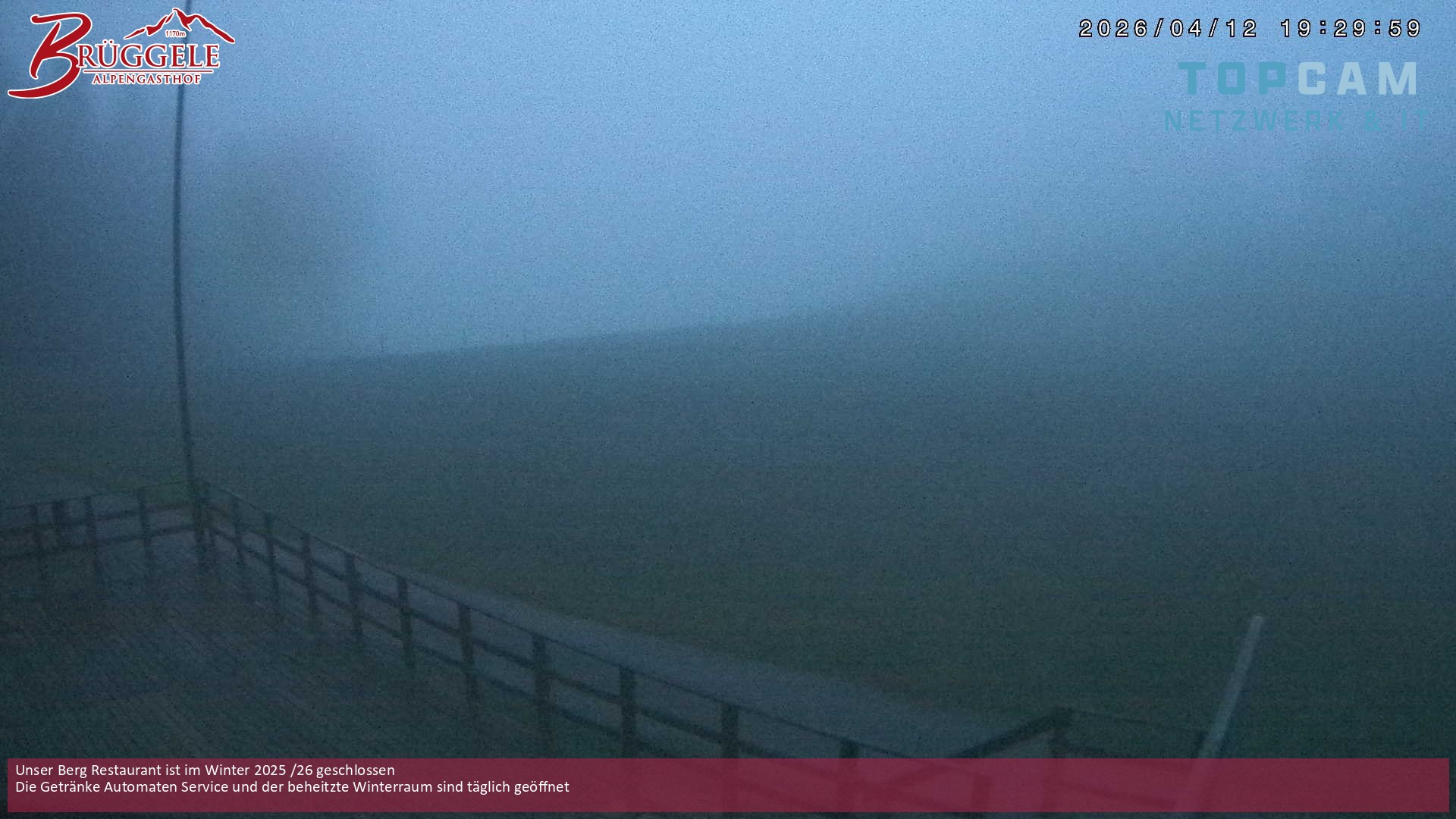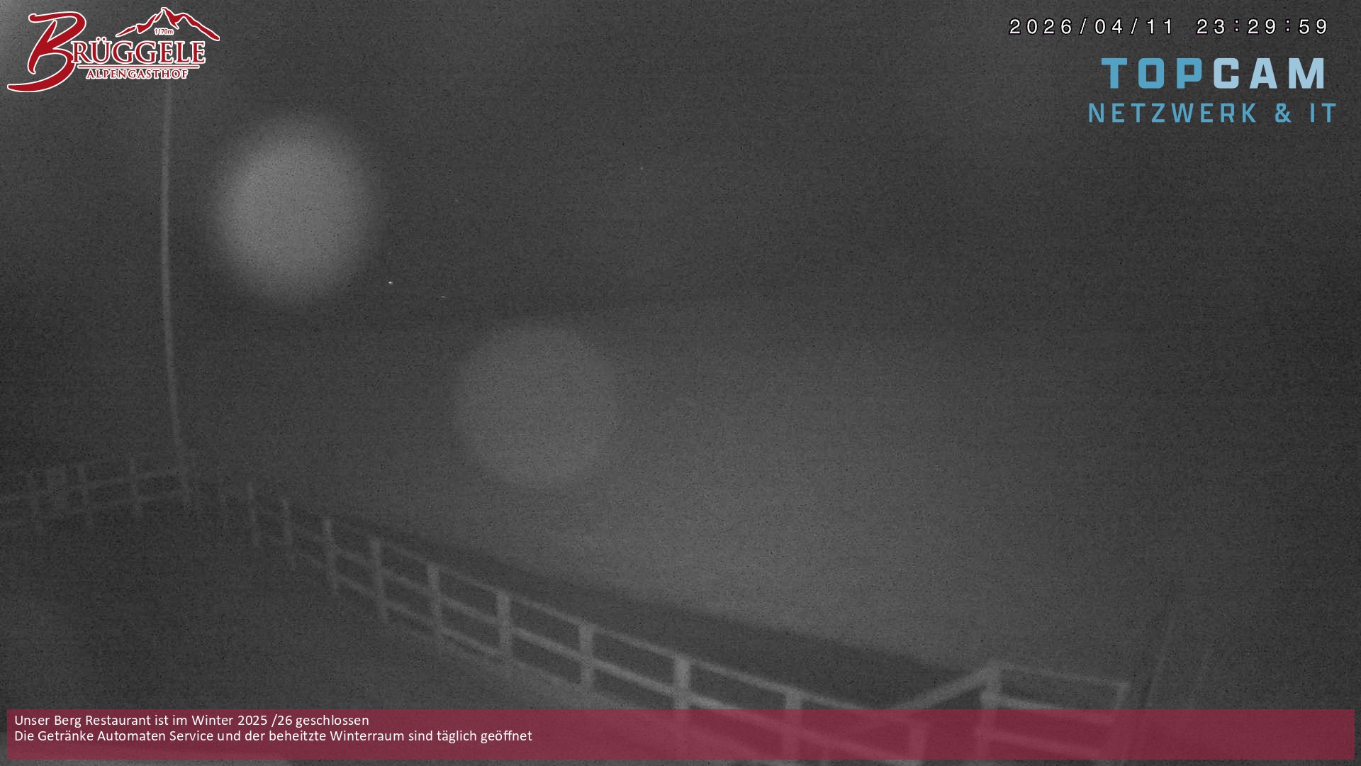 Archiviertes Webcam Bild: Alberschwende: Alpengasthof Brüggele am 12.04.2026 um 00:44 Uhr 00:00