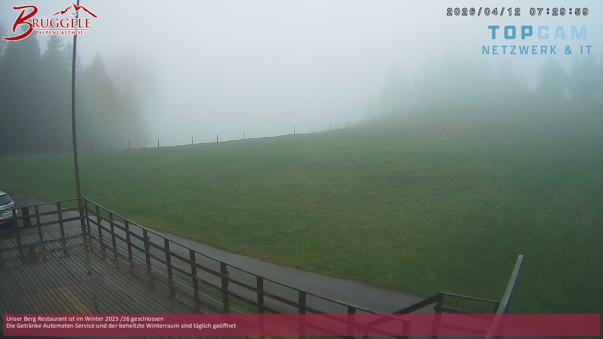 Archiviertes Webcam Bild: Alberschwende: Alpengasthof Brüggele am 12.04.2026 um 07:44 Uhr 07:00