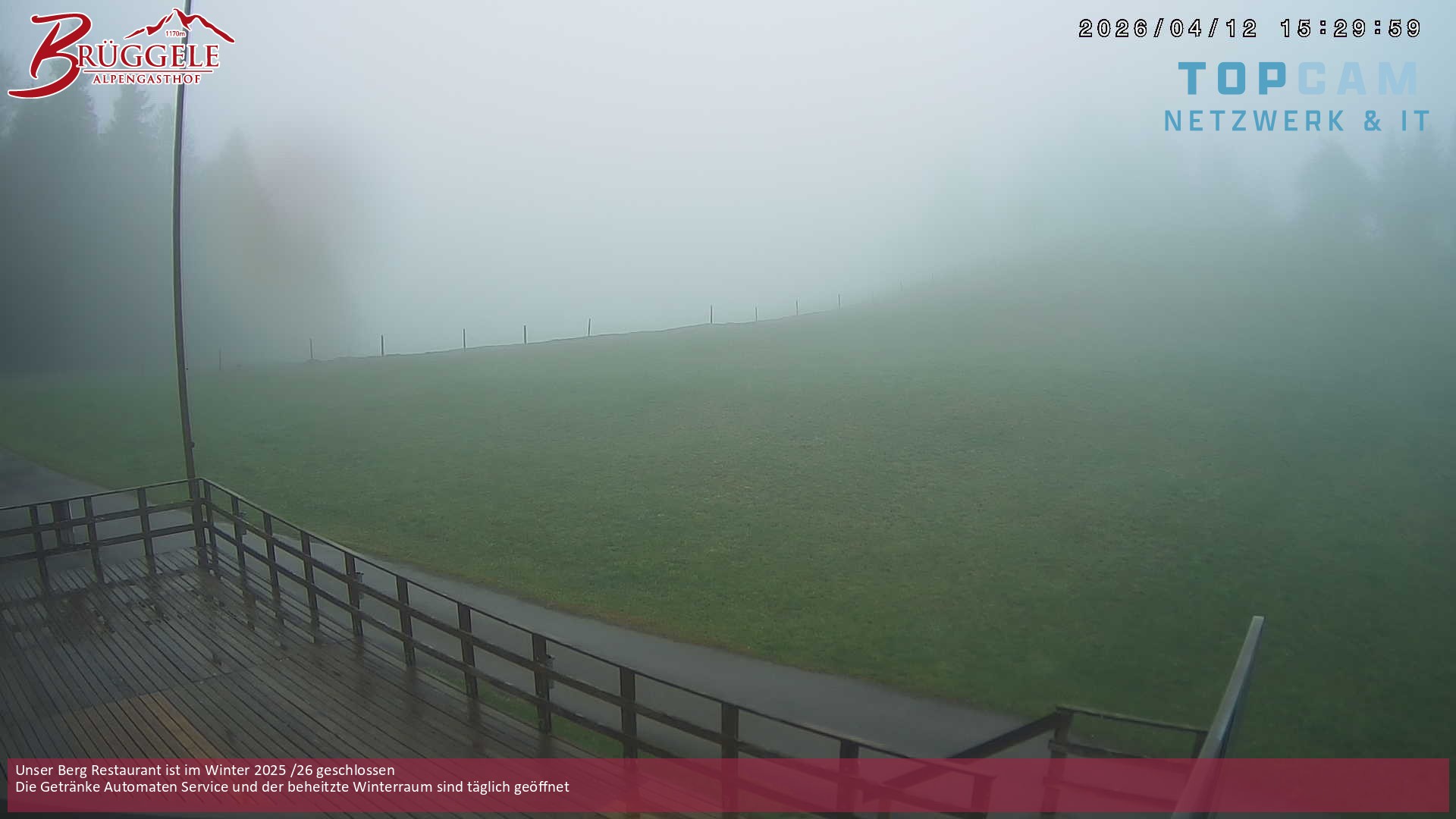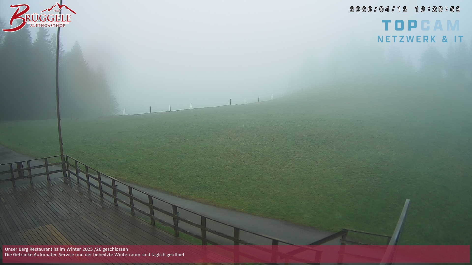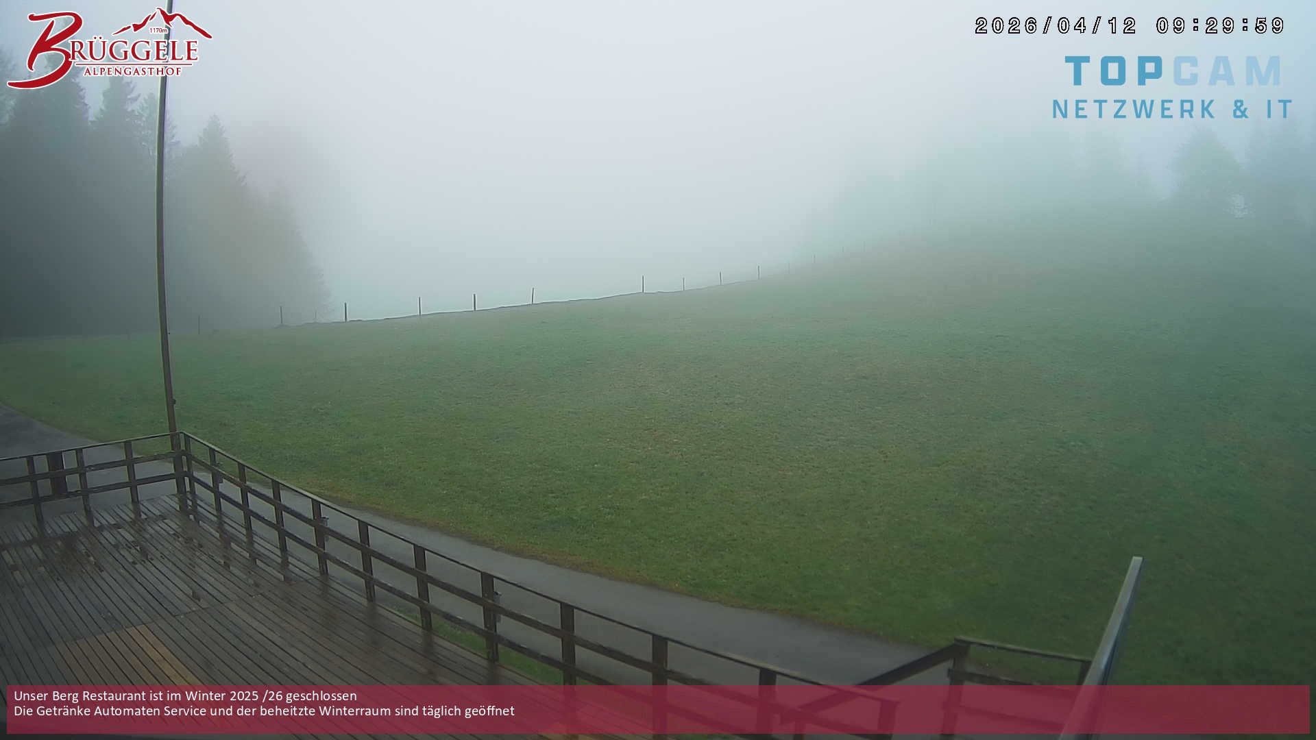 Archiviertes Webcam Bild: Alberschwende: Alpengasthof Brüggele am 12.04.2026 um 12:44 Uhr 12:00