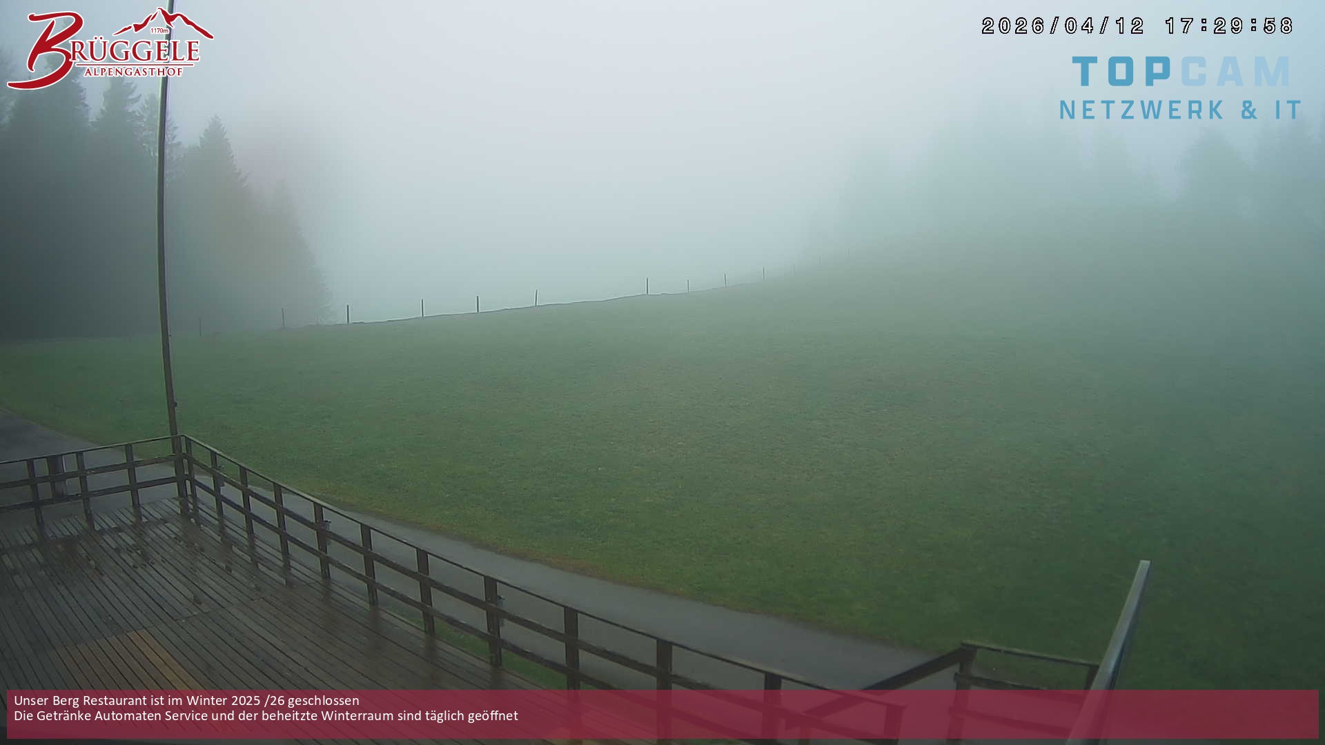 Archiviertes Webcam Bild: Alberschwende: Alpengasthof Brüggele am 12.04.2026 um 18:44 Uhr 18:00
