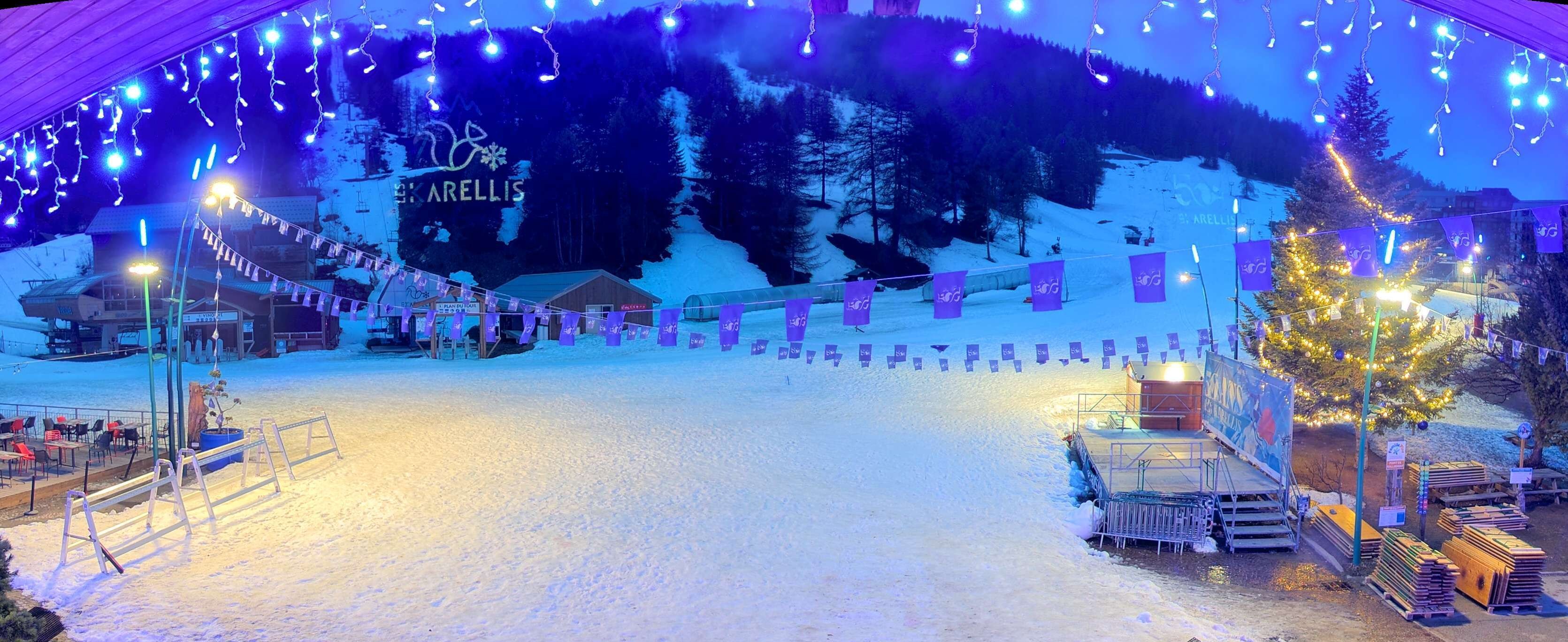 Diese Webcam zeigt die Talstation des französischen Skigebiets Les Karellis in Montricher-Albanne.