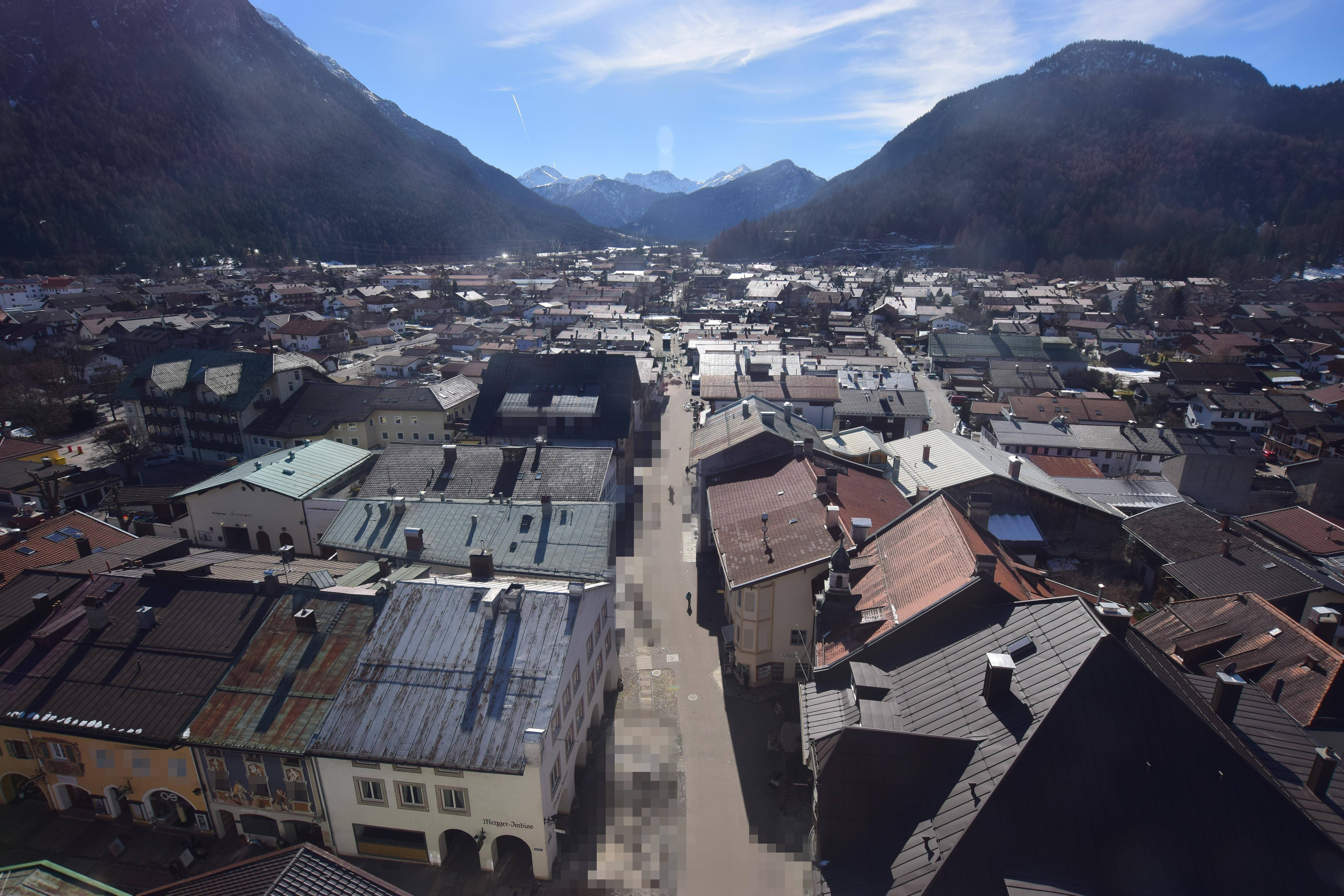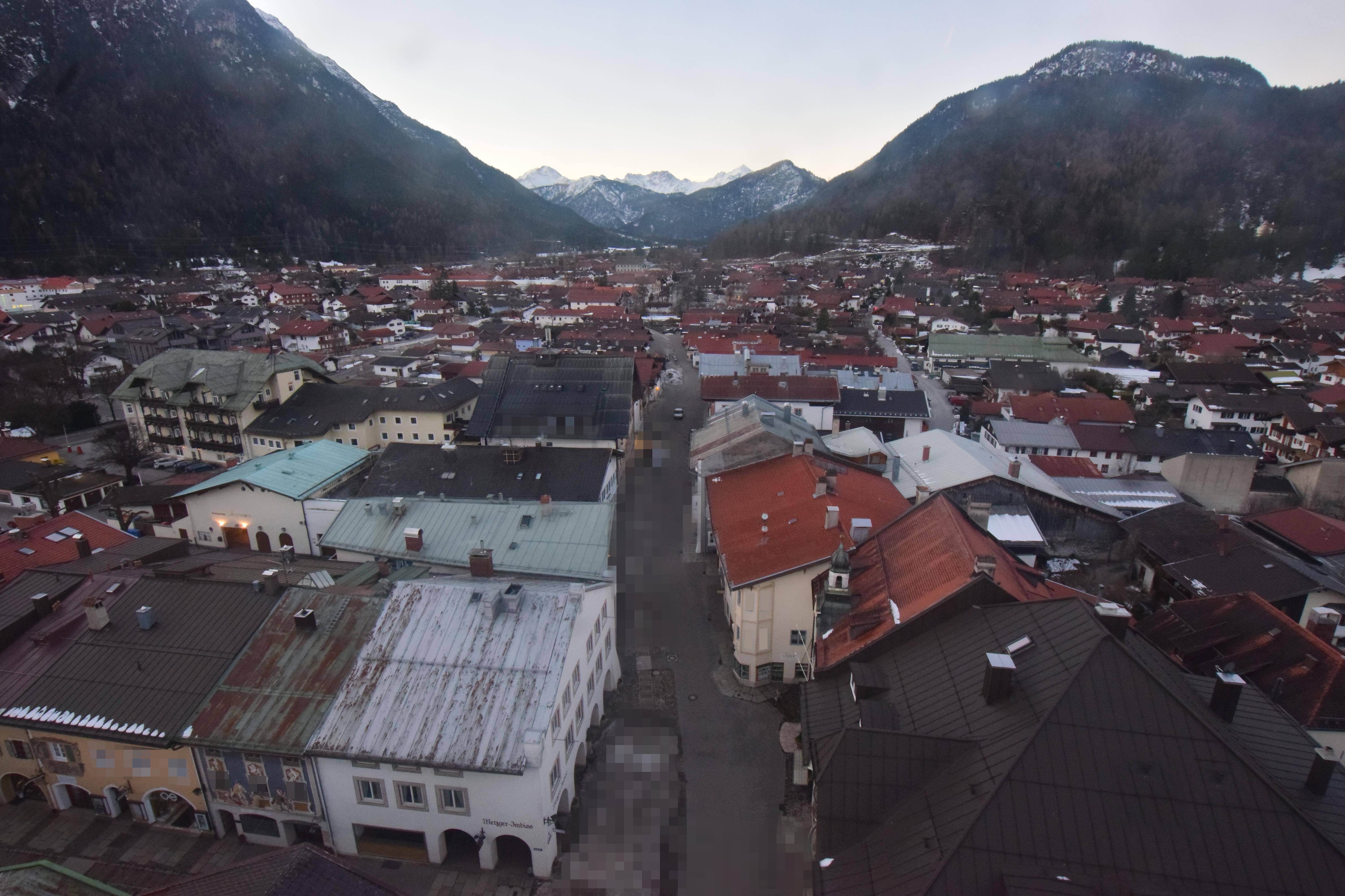 Die Webcam zeigt den Blick von der Kirche St. Peter und Paul auf die Ortschaft Mittenwald. Hier befindet sich das Skigebiet Karwendel Mittenwald.