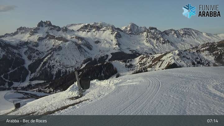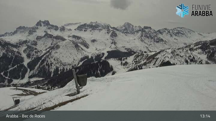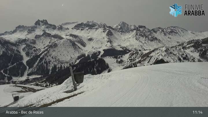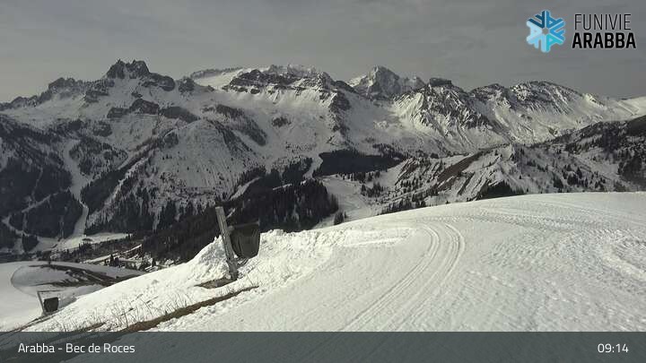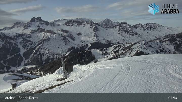 Die Webcam befindet sich an der Bergstation der Sesselbahn Arabba-Monte Burz im Skigebiet Arabba. Sie zeigt das Bergrestaurant Rifugio Burz und blickt hinüber zu den Pisten am Le Pale Sessellift.