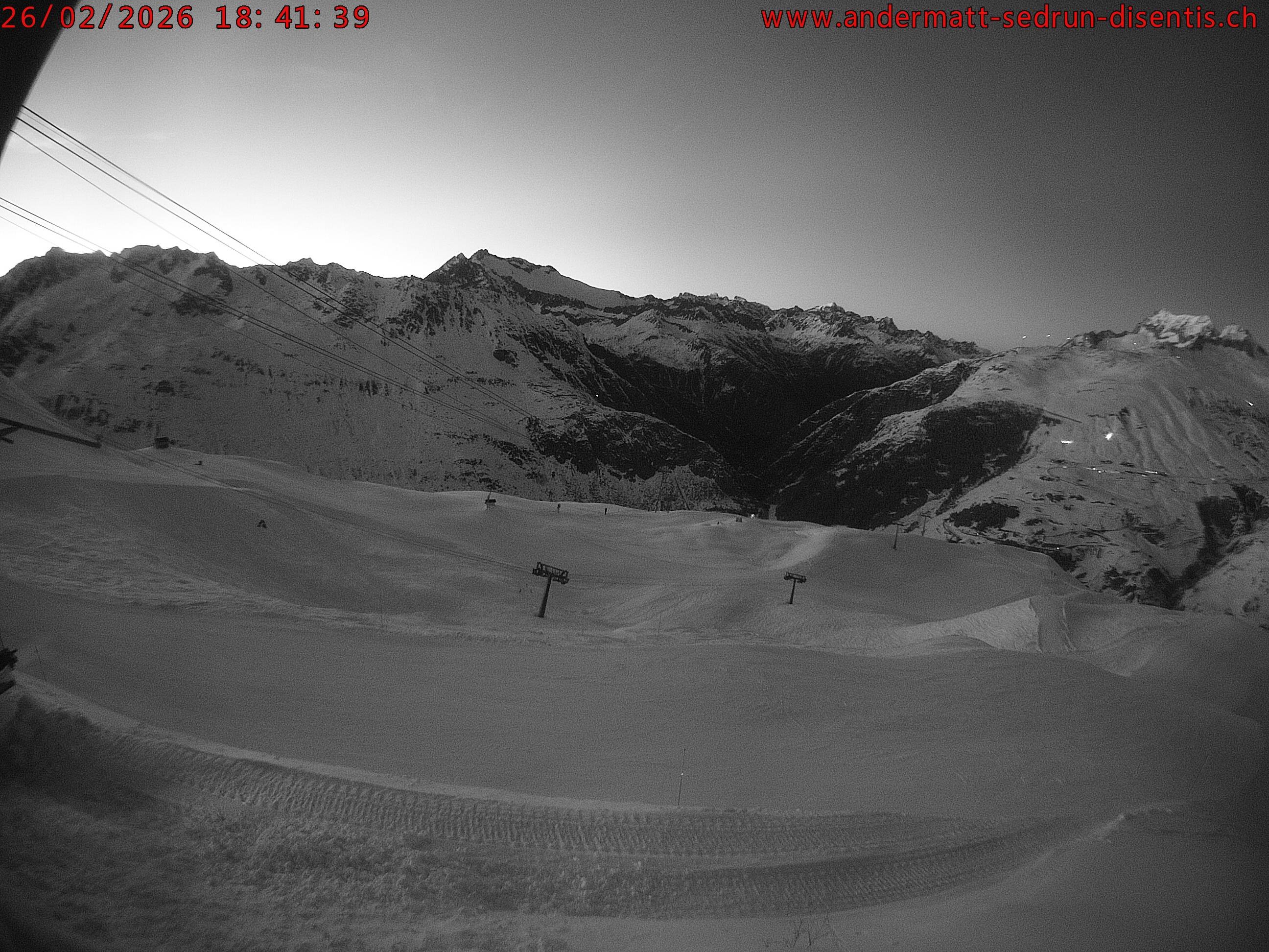 Archiviertes Webcam Bild: Andermatt: Gurschenalp am 26 Feb 2026 um 06:57 Uhr 05:00