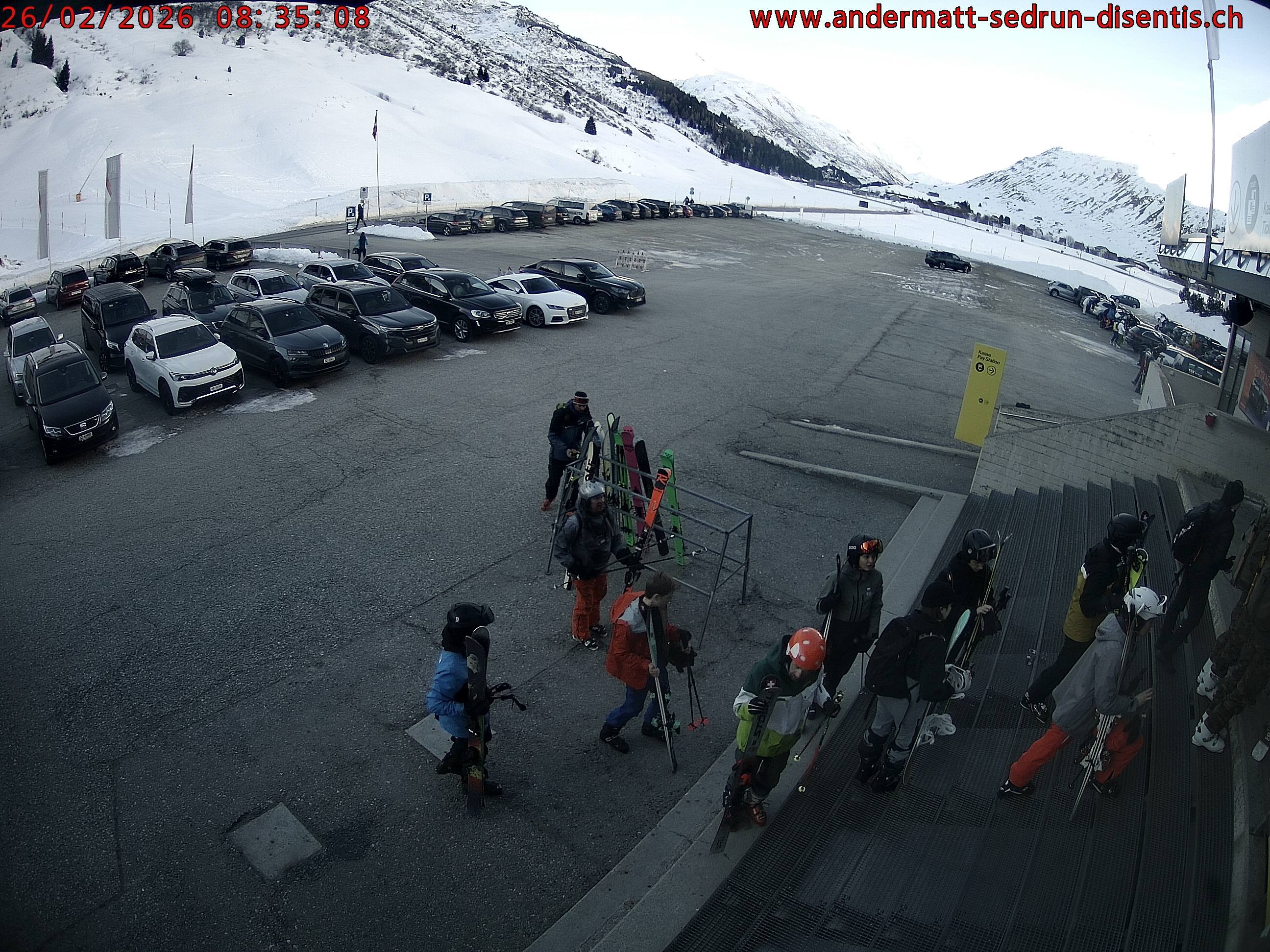 Archiviertes Webcam Bild: Andermatt: Parkplatz Gemsstockbahn am 26 Feb 2026 um 08:56 Uhr 07:00