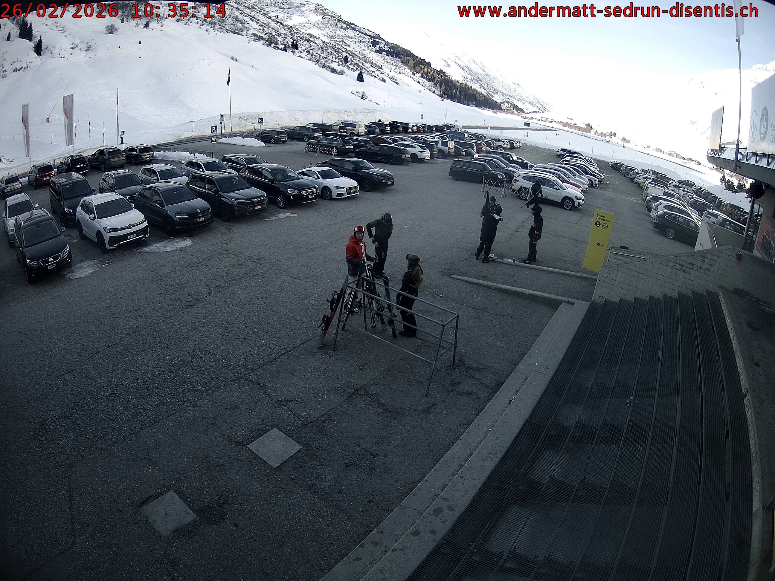 Archiviertes Webcam Bild: Andermatt: Parkplatz Gemsstockbahn am 26 Feb 2026 um 10:56 Uhr 09:00