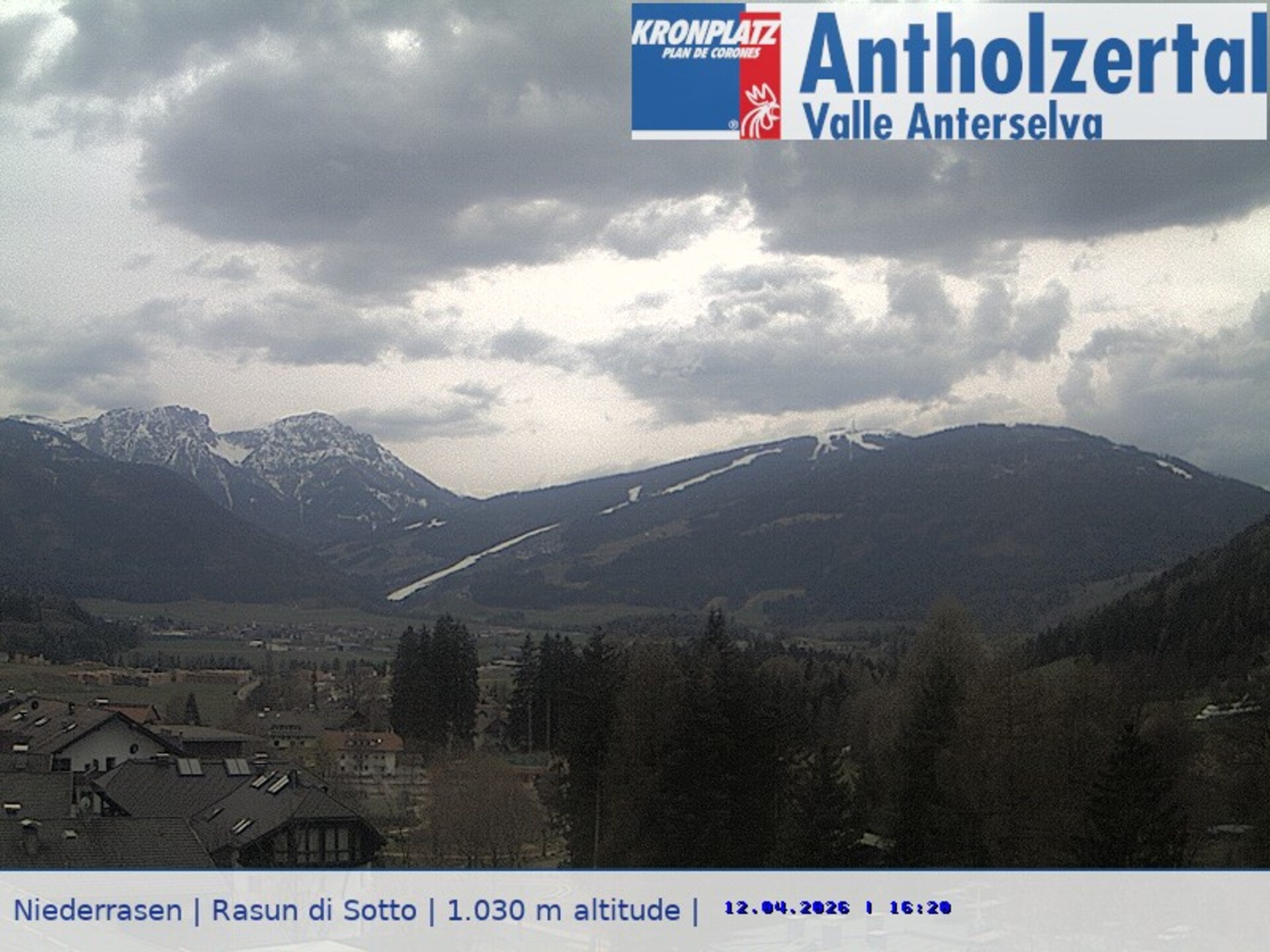Archiviertes Webcam Bild: Rasen Dorf mit Blick Richtung Kronplatz am 12.04.2026 um 16:55 Uhr 16:00