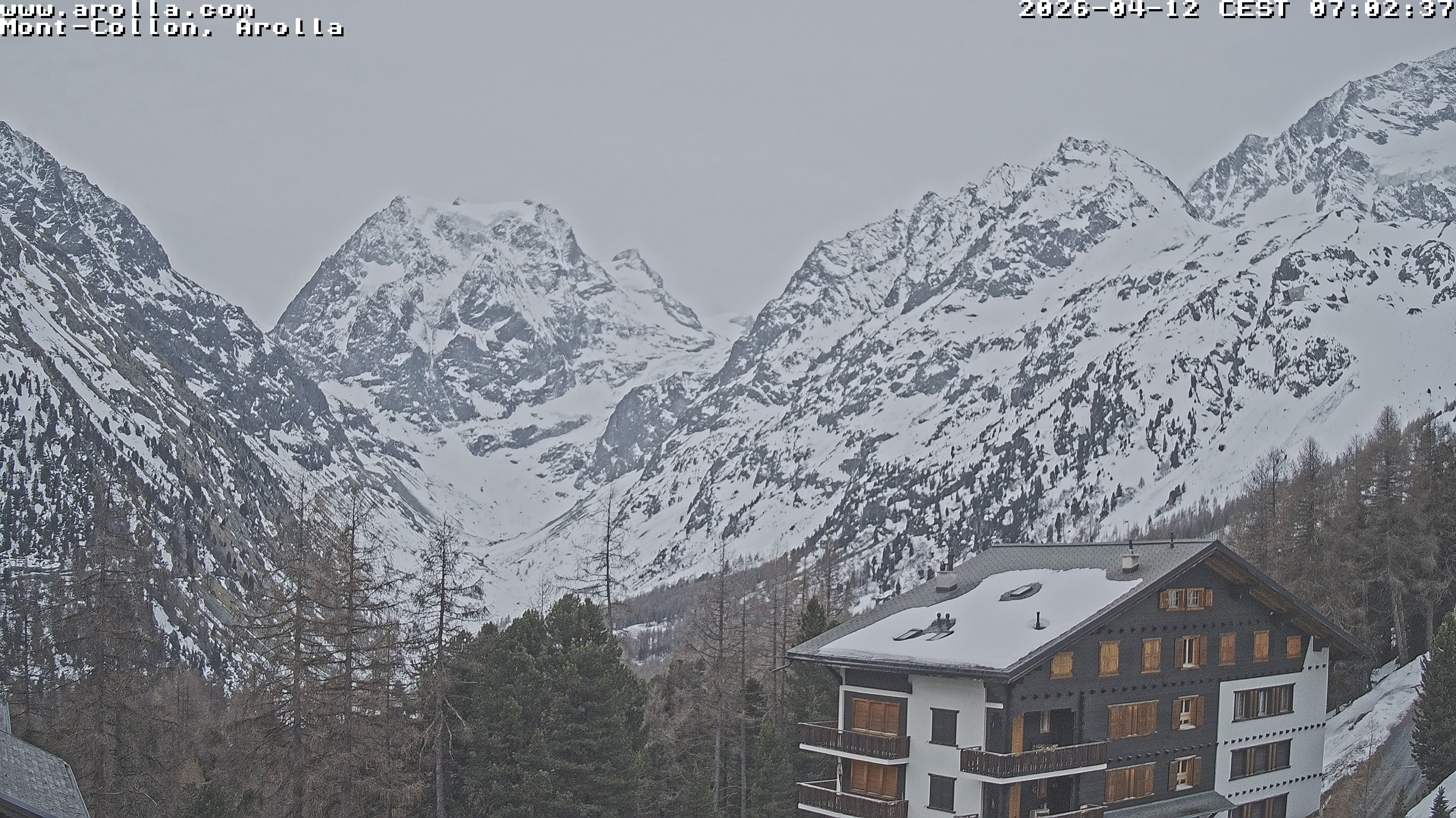 Blick vom Hotelkomplex Marmottes auf das Hotel Kurhaus und den Mont Collon