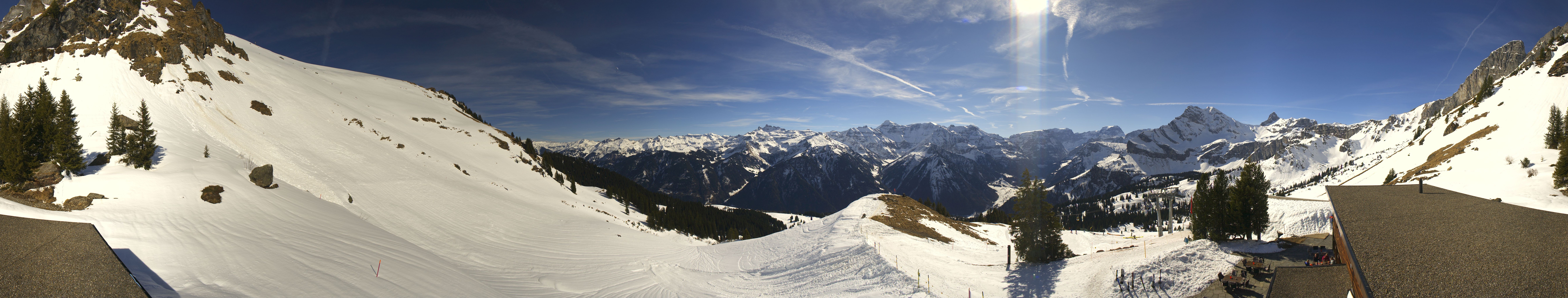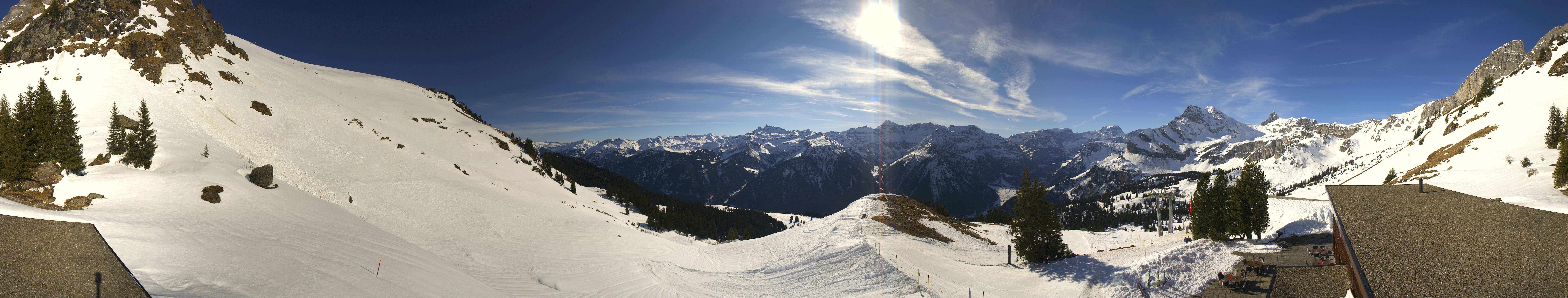 Archiviertes Webcam Bild: Panorama: Braunwald Gumen am 26 Feb 2026 um 12:53 Uhr 11:00