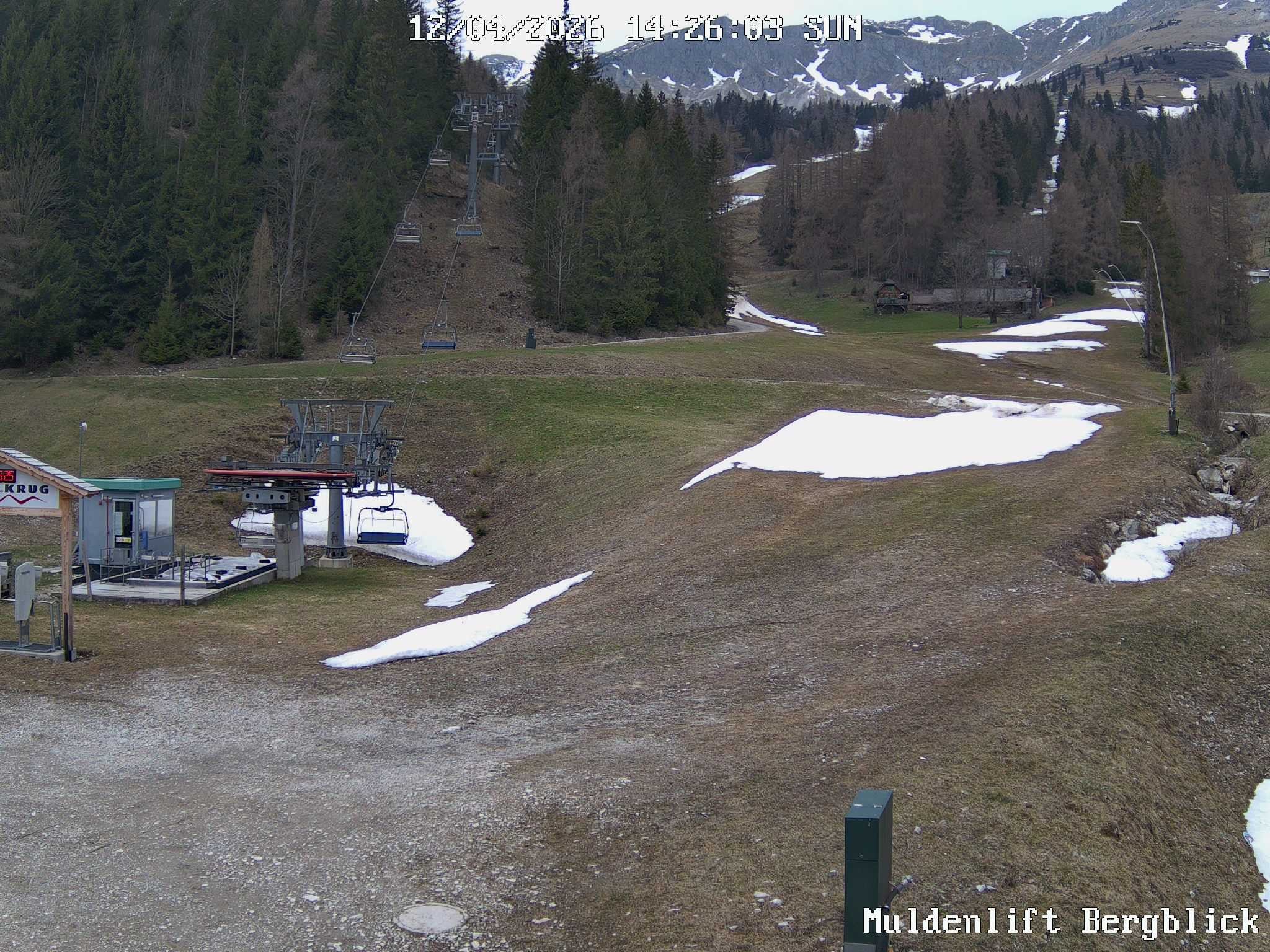 Archiviertes Webcam Bild: Brunnalm: Talstation Muldenlift am 12.04.2026 um 14:44 Uhr 14:00
