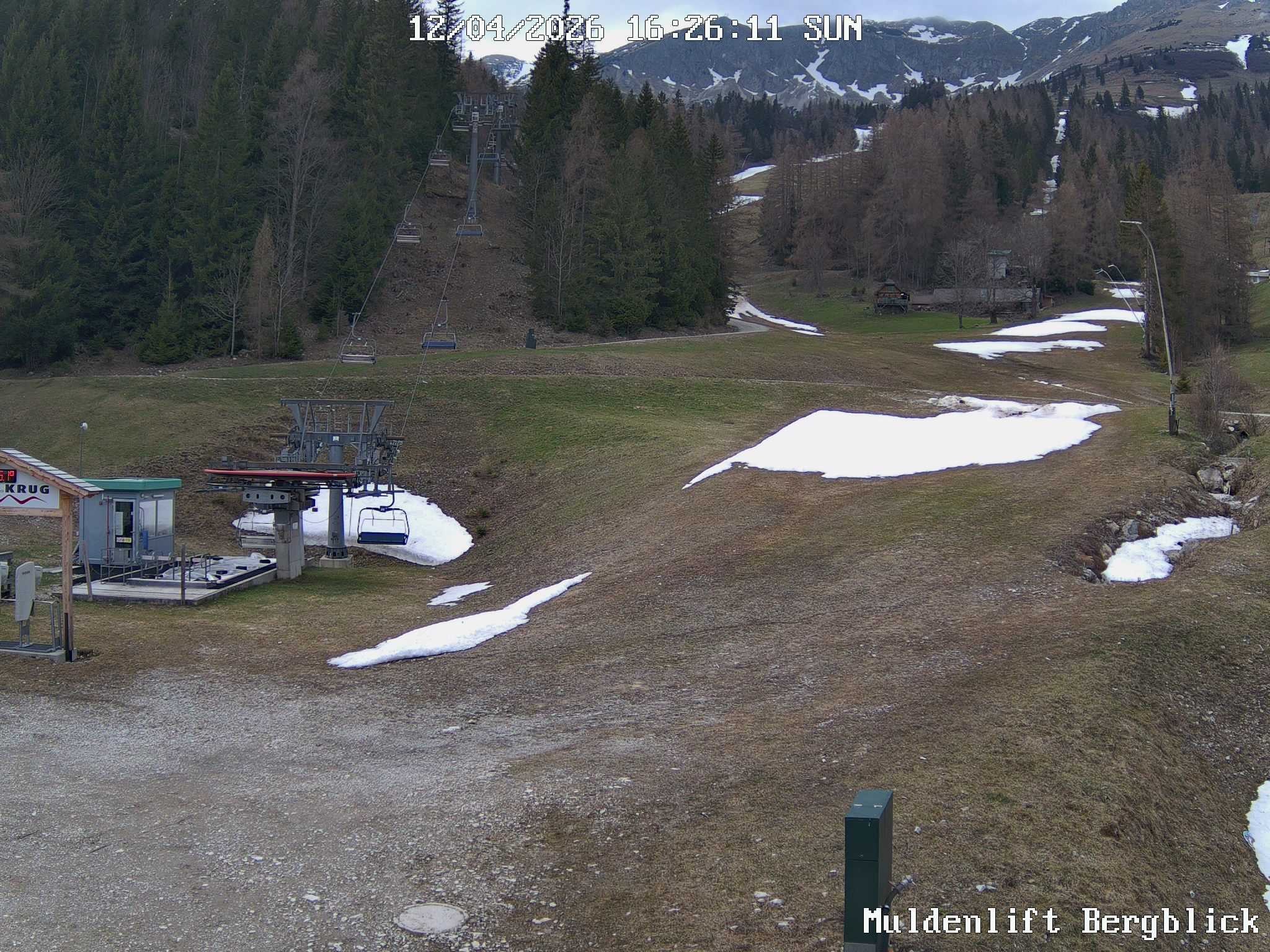 Archiviertes Webcam Bild: Brunnalm: Talstation Muldenlift am 12.04.2026 um 12:44 Uhr 12:00