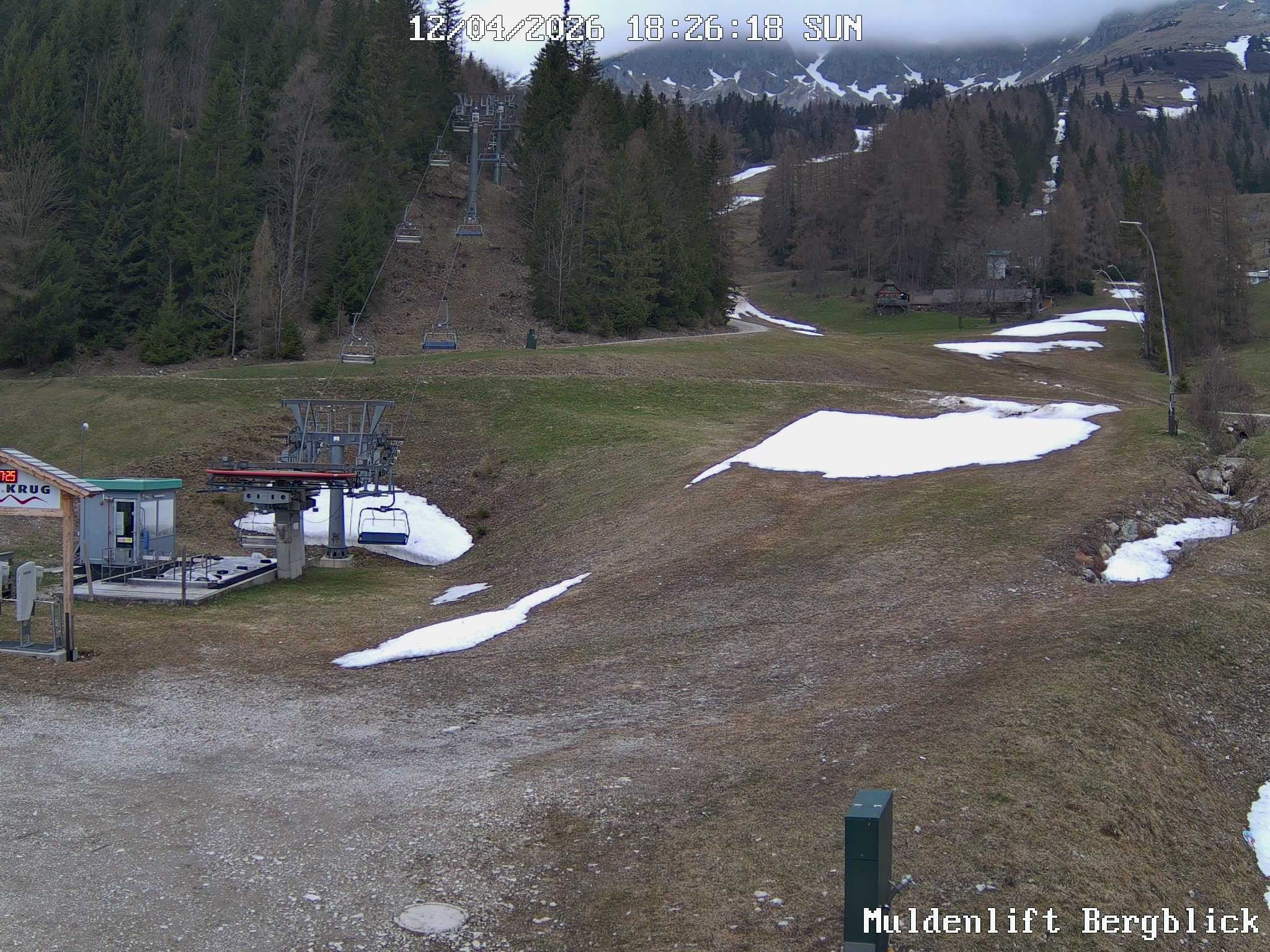 Archiviertes Webcam Bild: Brunnalm: Talstation Muldenlift am 12.04.2026 um 18:44 Uhr 18:00