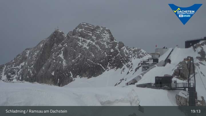 Archived webcam image showing Dachstein Top Station on 12 Apr 2026 at 19:54 Aktuell