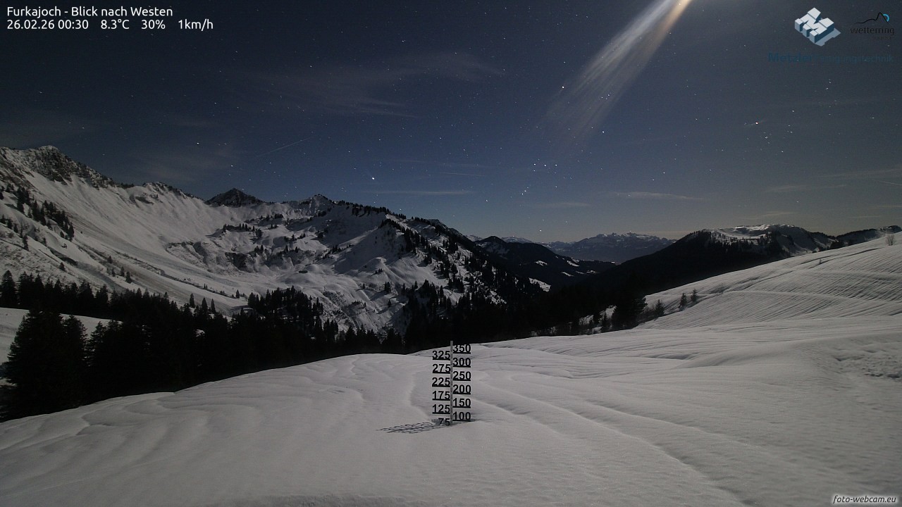 Archiviertes Webcam Bild: Furkajoch Blick nach Westen am 26 Feb 2026 um 00:46 Uhr 23:00