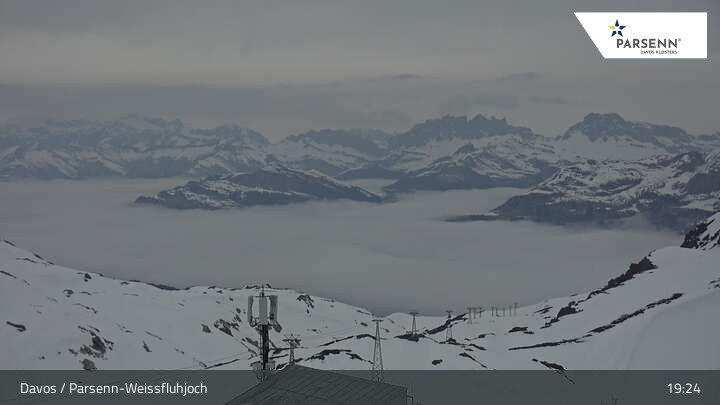 Archiviertes Webcam Bild: Davos: Parsenn-Weissfluhjoch am 12.04.2026 um 19:09 Uhr Aktuell