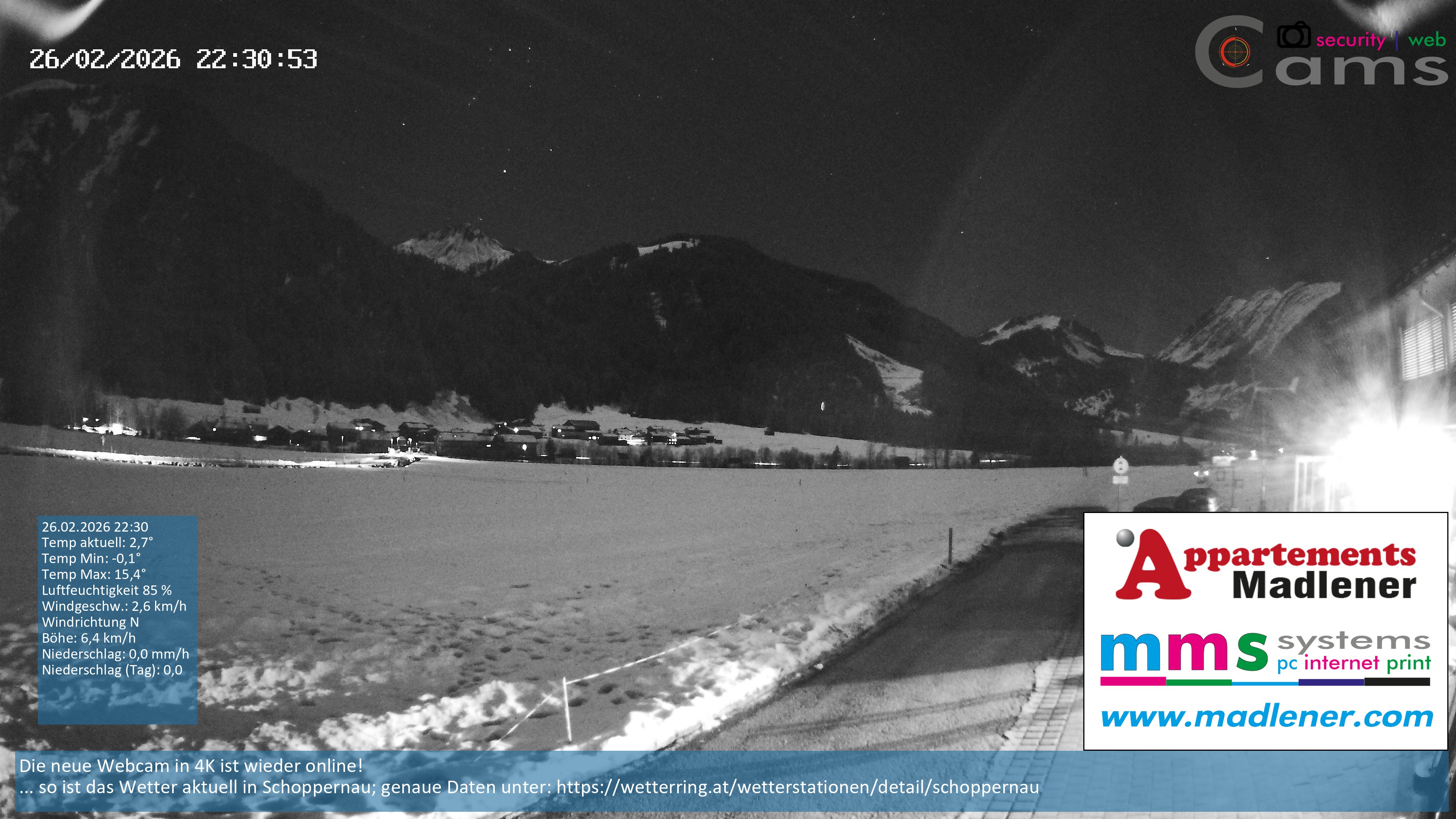 Archiviertes Webcam Bild: Schoppernau Unterdorf am 26 Feb 2026 um 02:37 Uhr 01:00