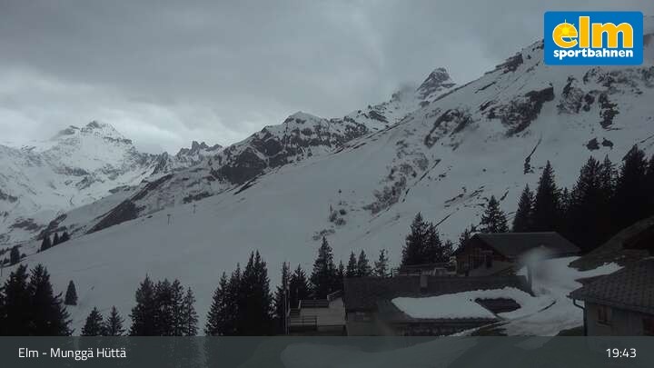 Hier siehst du die Munggä Hüttä. Mitten im Skigebiet Elm gelegen verwöhnt sie Skifahrer und Snowboarder unter anderem mit Tischgrill oder Fondue. Auf der großen Terrasse lässt sich herrlich die Sonne genießen.
