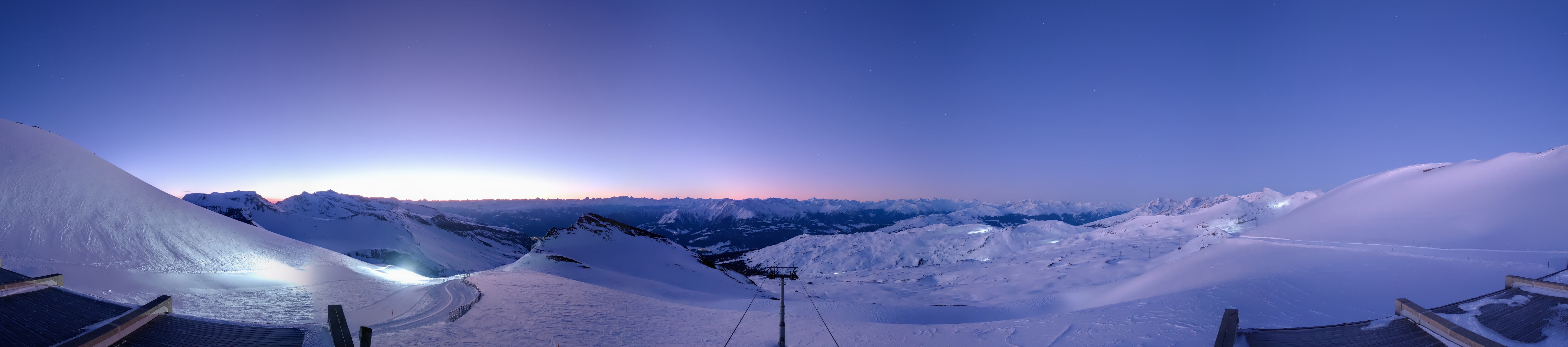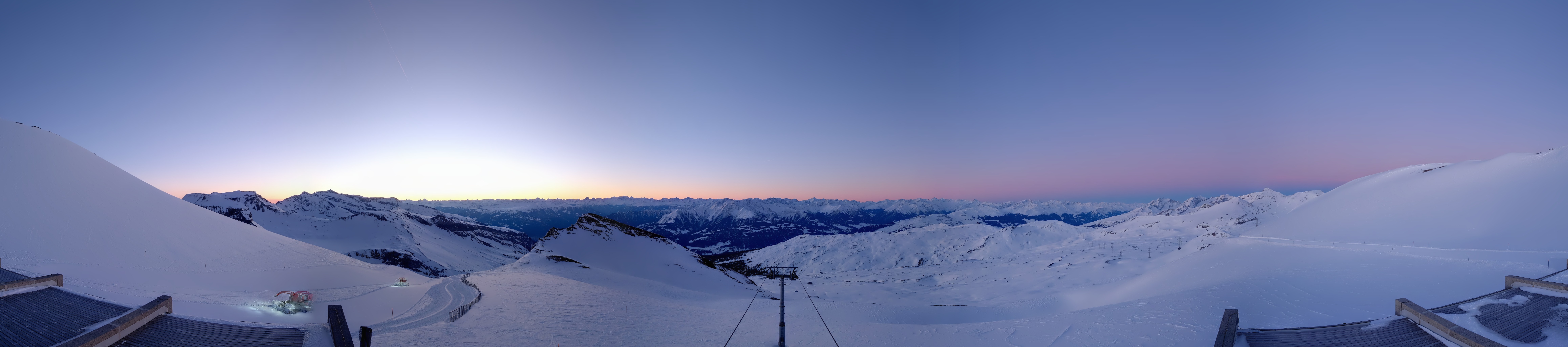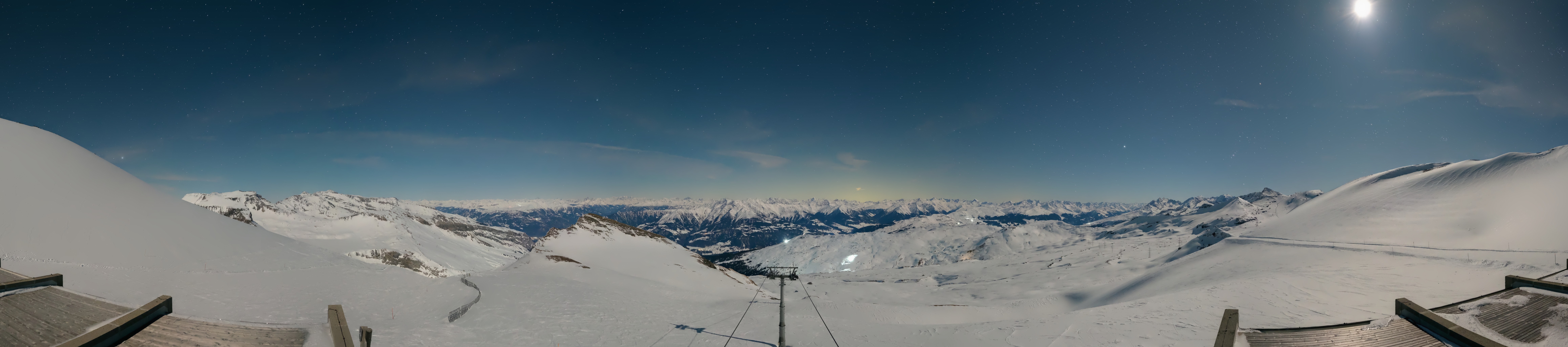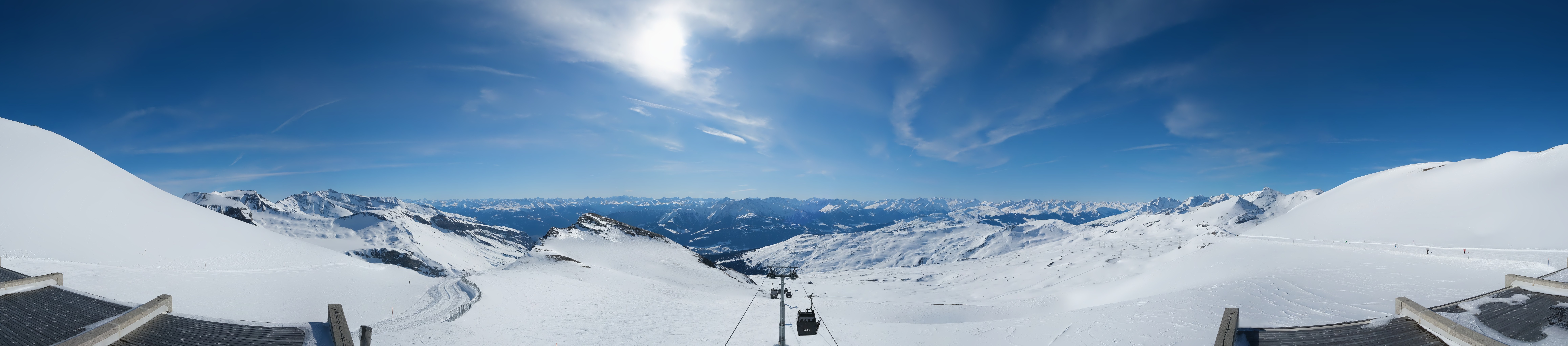 Direkt an der Bergstation von La Siala im Schweizer Skigebiet Laax gelegen, bietet die Roundshot-Cam einen fantastischen 360-Grad-Blick auf das Skigebiet und seine atemberaubende Berglandschaft.