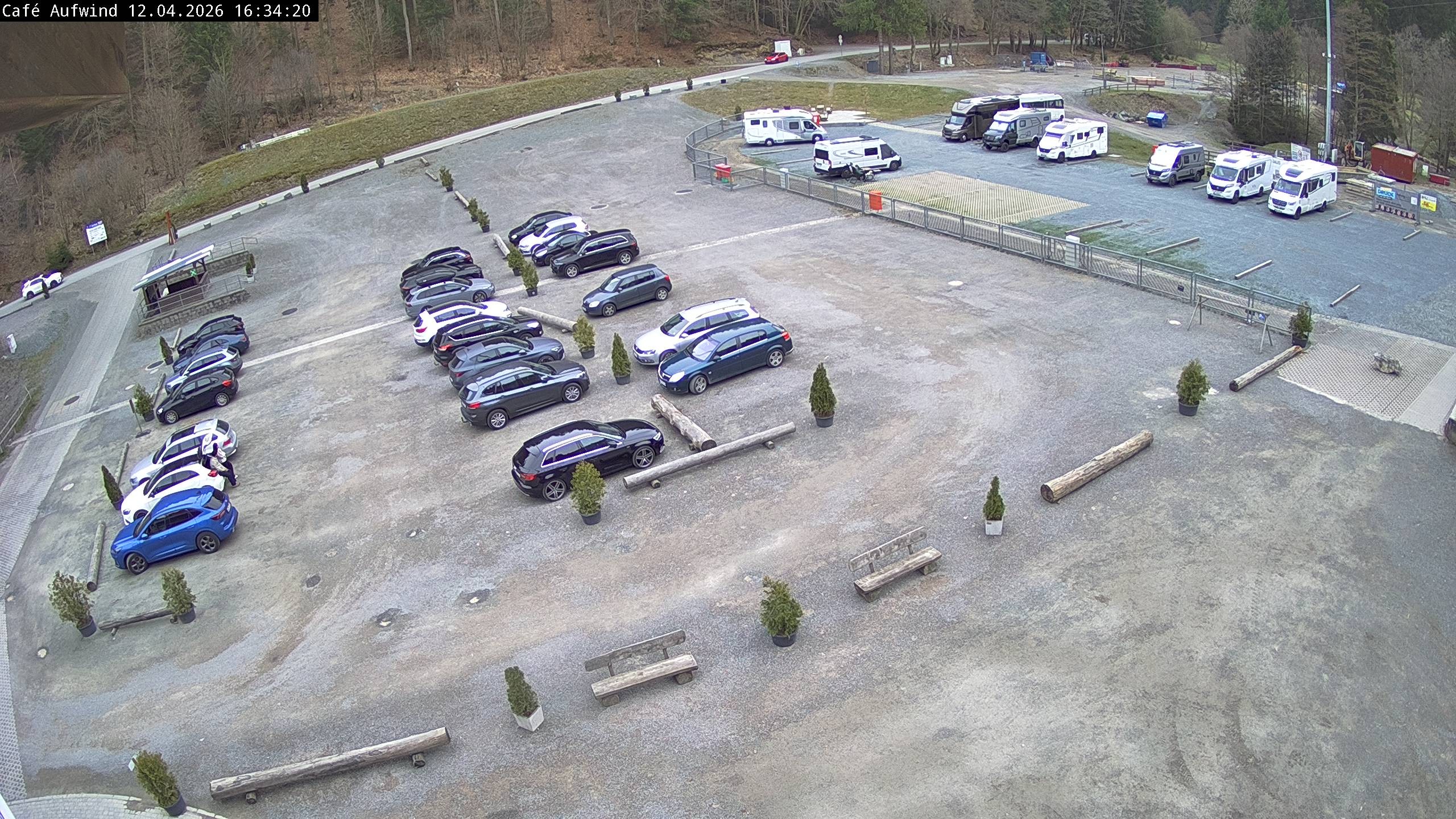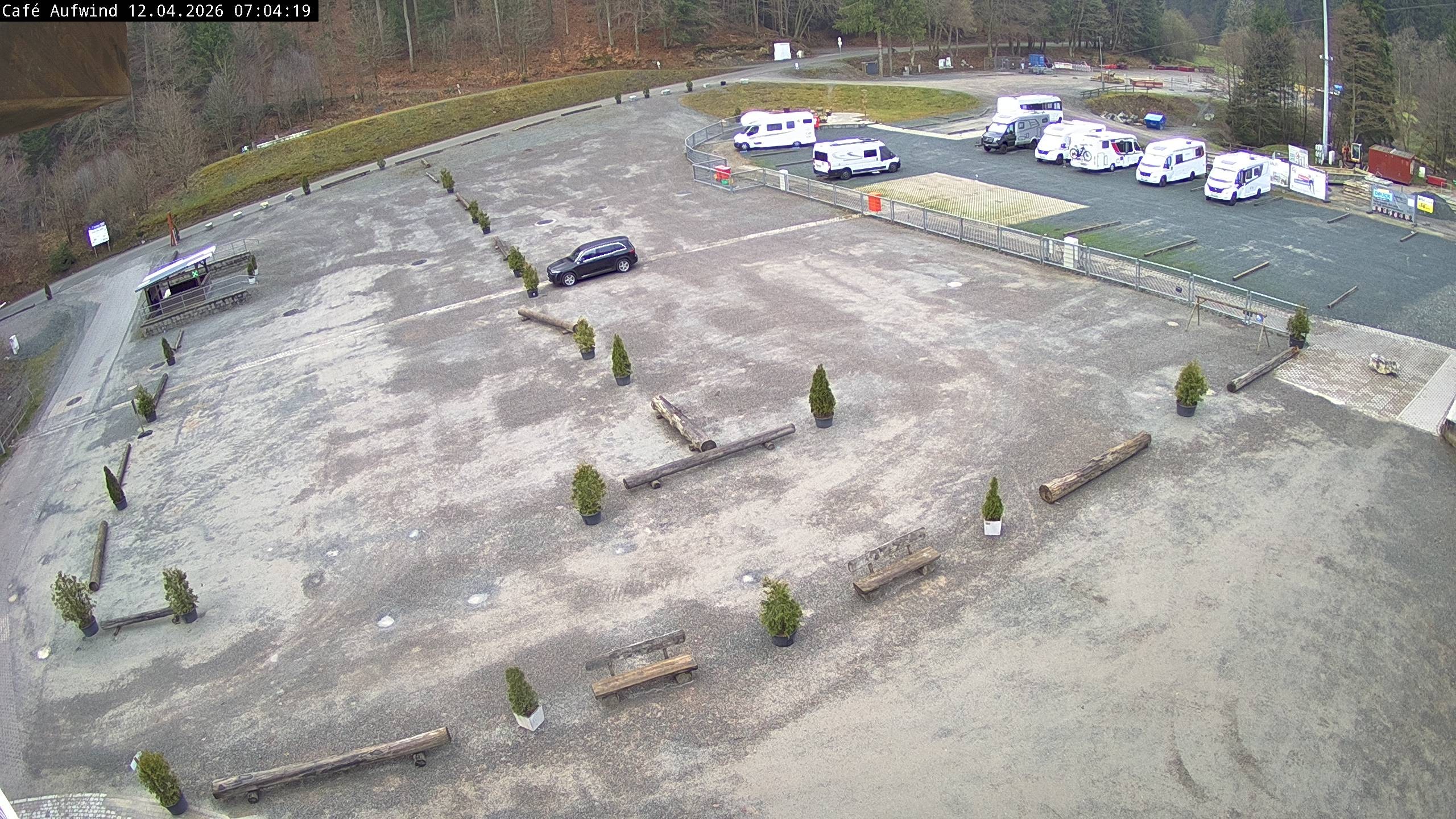 Die Webcam steht am Cafe Aufwind und zeigt den Zuschauerbereich/Parkplatz und den Auslauf der Mühlenkopfschanze in Willingen. Die Großschanze ist Austragungsort des jährlichen Weltcups.