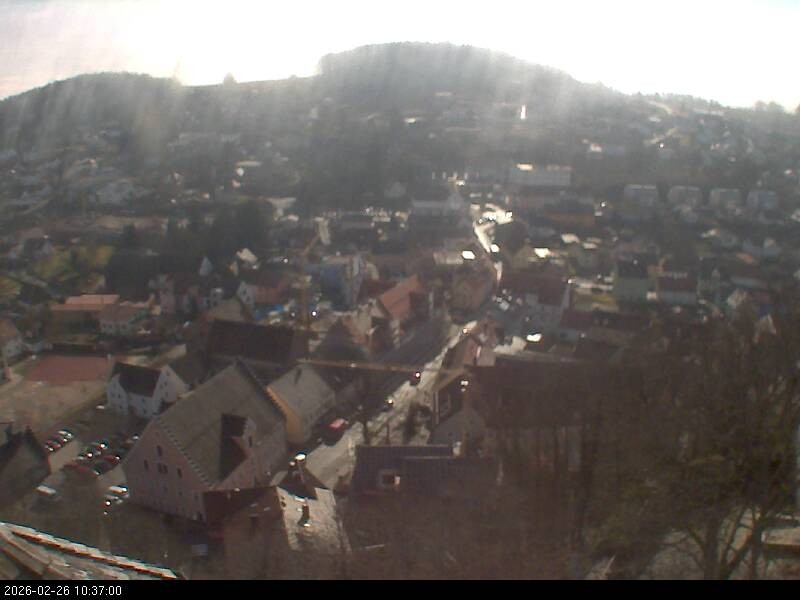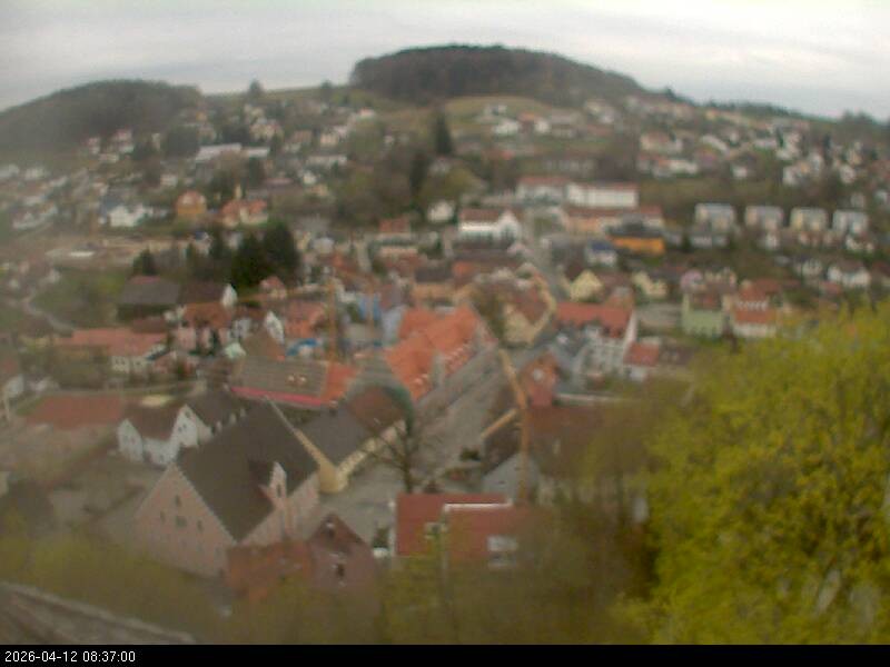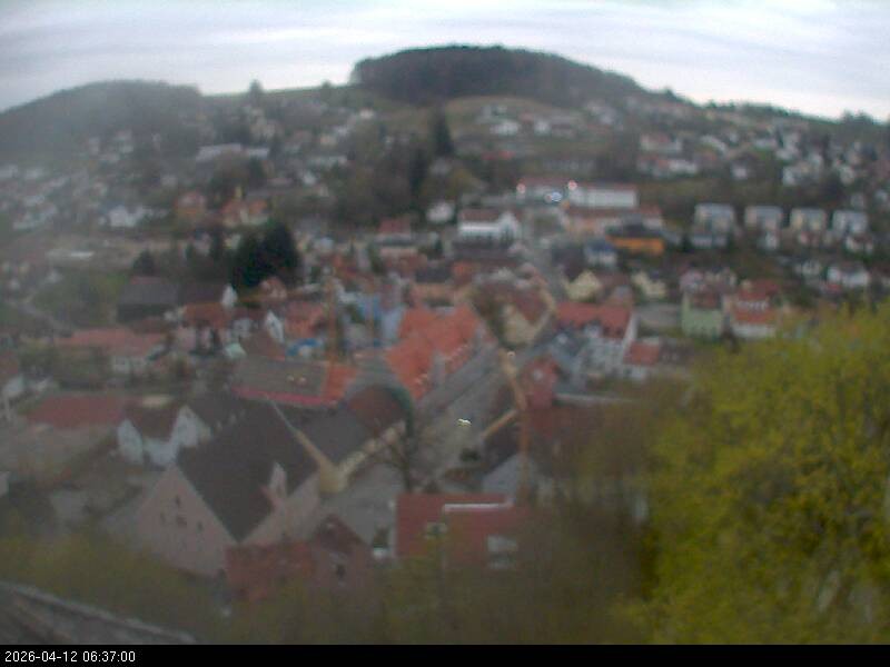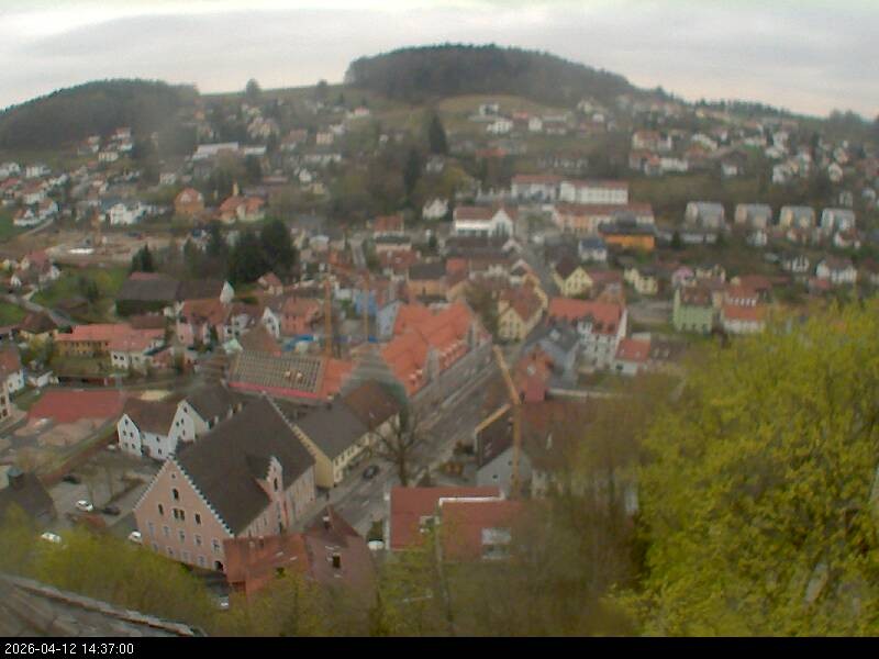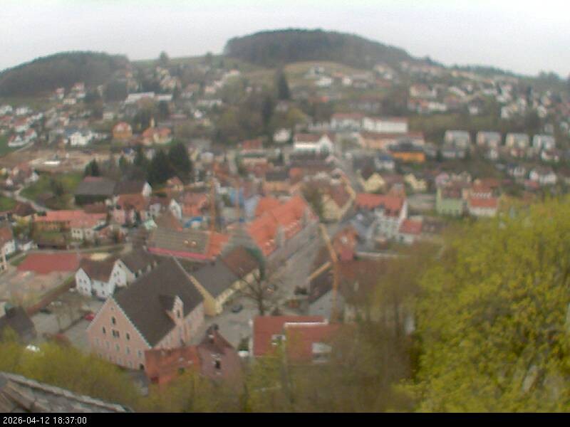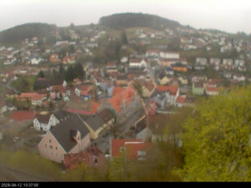 Webcam mit Blick auf den bayerischen Ort Falkenstein im Landkreis Cham. Das Wahrzeichen der Stadt ist die Burg Falkenstein.