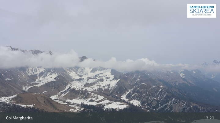Archiviertes Webcam Bild: Fassatal: San Pellegrino - Bergstation Col Margherita am 12.04.2026 um 13:48 Uhr 13:00