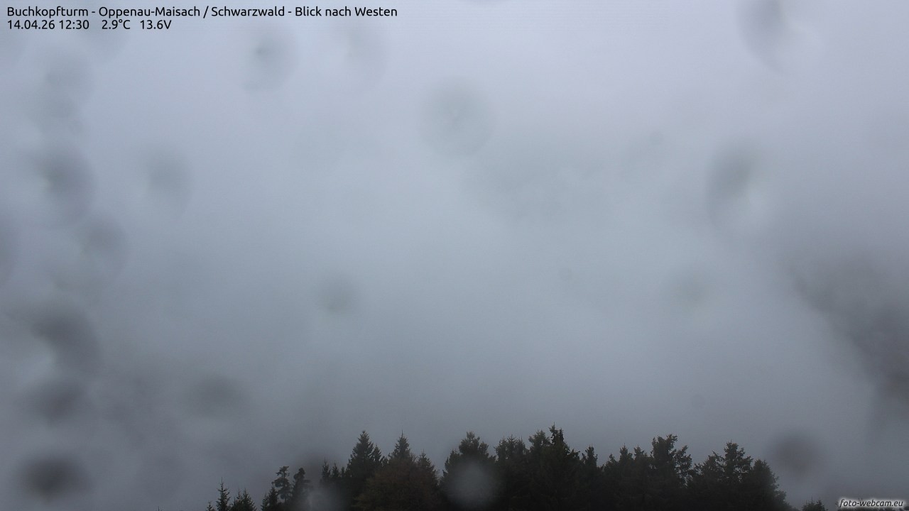 Archived webcam image showing Buchkopfturm - Black Forest - View to the West on 14 Apr 2026 at 12:27 11:00