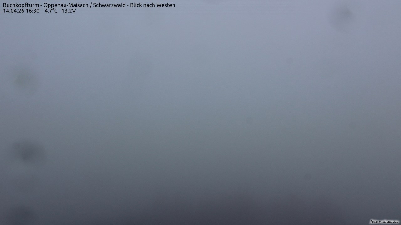 Archived webcam image showing Buchkopfturm - Black Forest - View to the West on 14 Apr 2026 at 16:27 15:00