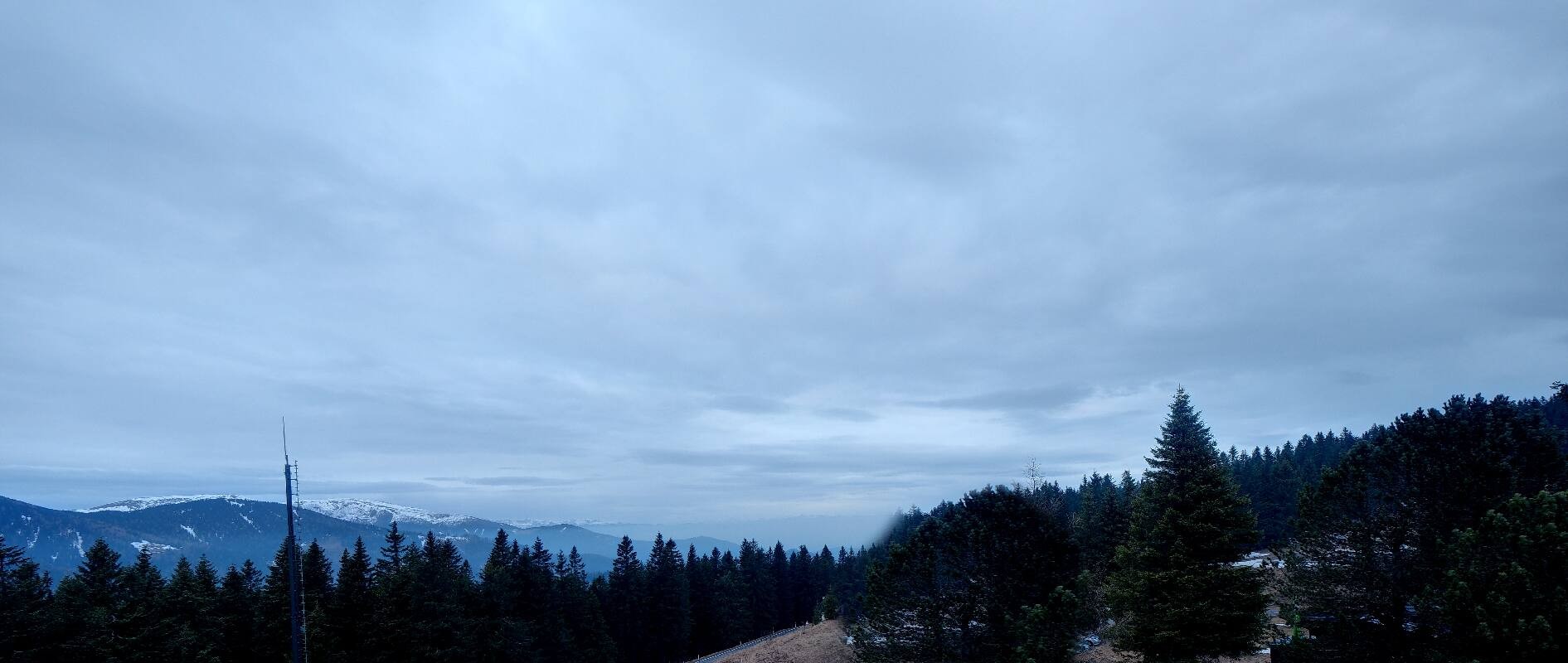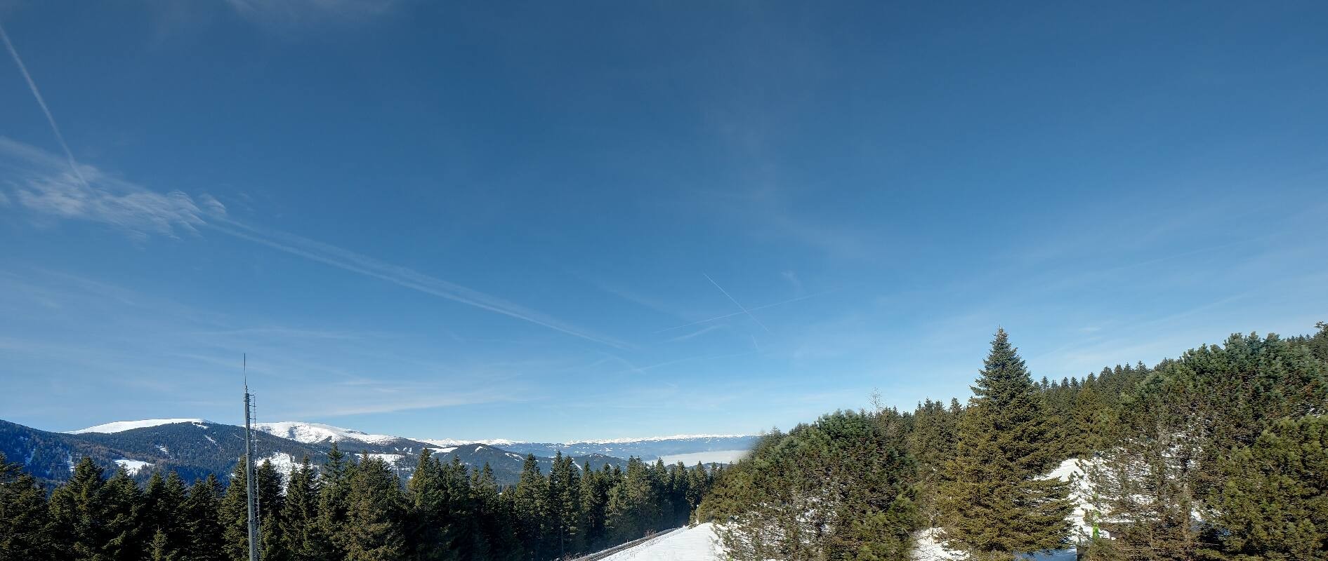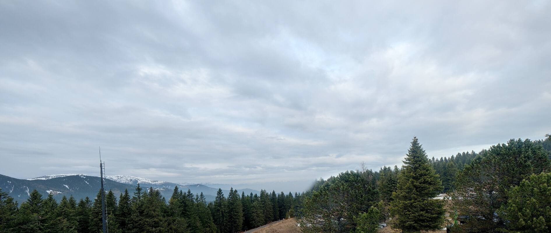 Genieße den Fernblick vom Gaberlhaus im Skigebiet Gaberl in Richtung Westen.