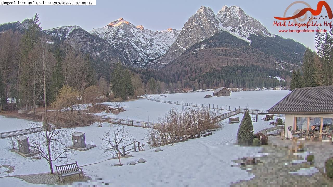 Archiviertes Webcam Bild: Grainau: Hotel Längenfelder Hof am 26 Feb 2026 um 08:11 Uhr 07:00