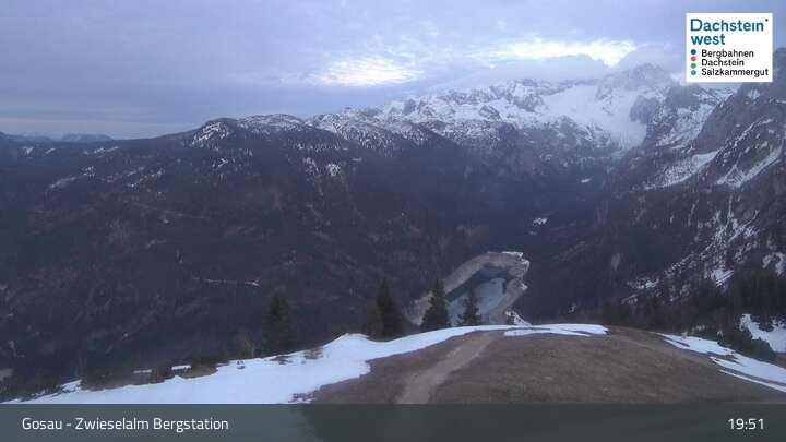 Archiviertes Webcam Bild: Dachstein West: Zwieselalm Bergstation am 12.04.2026 um 19:41 Uhr Aktuell