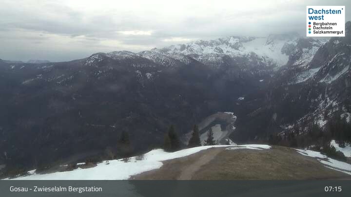 Archiviertes Webcam Bild: Dachstein West: Zwieselalm Bergstation am 12.04.2026 um 07:41 Uhr 07:00