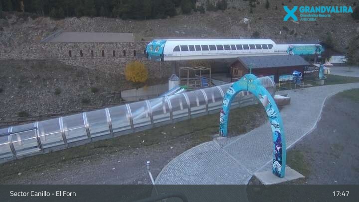 Aussicht über das Gebiet von El Forn oberhalb von Canillo, das mit der gleichnamigen Gondelbahn erschlossen wird. Hier befindet sich das Kinderland sowie die Talstation des Sessellifts Portella