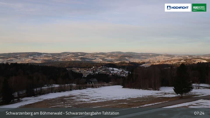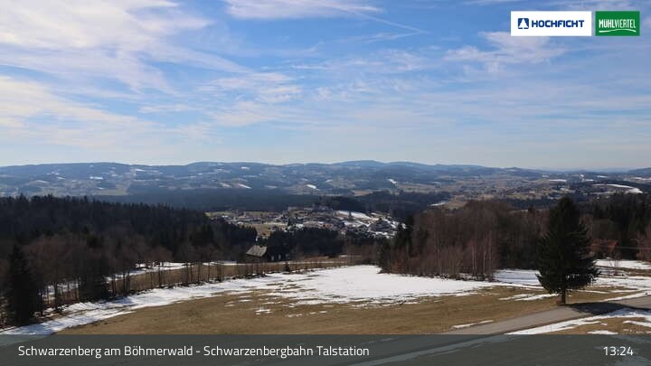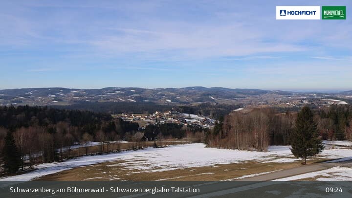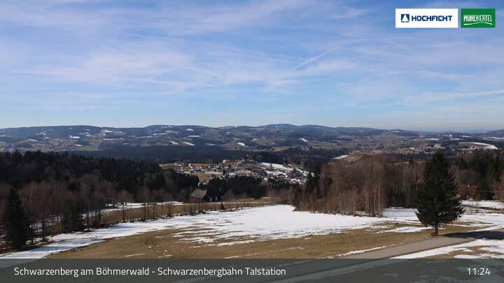 Die Webcam ist an der Talstation der Schwarzenbergbahn positioniert und zeigt einen tollen Blick auf den Ort Schwarzenberg im Böhmerwald und die Landschaft an der deutsch-österreichischen Grenze.
