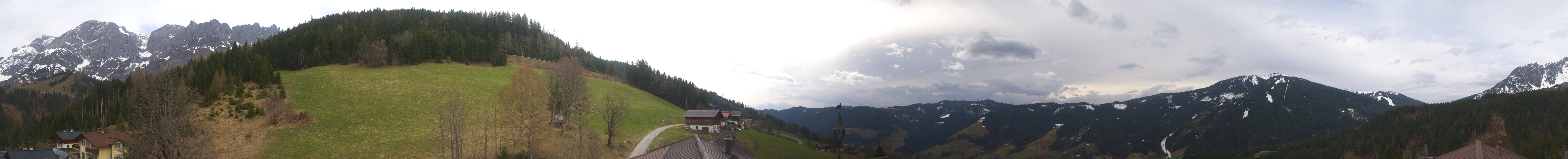 360-Grad-Webcam am Hotel Bergheimat in Mühlbach. Zu sehen sind auch Teile des Skigebiets Hochkönig, unter anderem der Gipfel des Schneebergs und die Kabinenbahn Karbachalm.