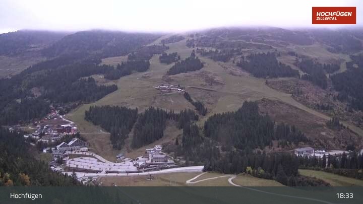Die Panoramaaufnahme zeigt den Parkplatz Klausboden, von wo aus man in das Skigebiet Hochfügen im Zillertal einsteigt.