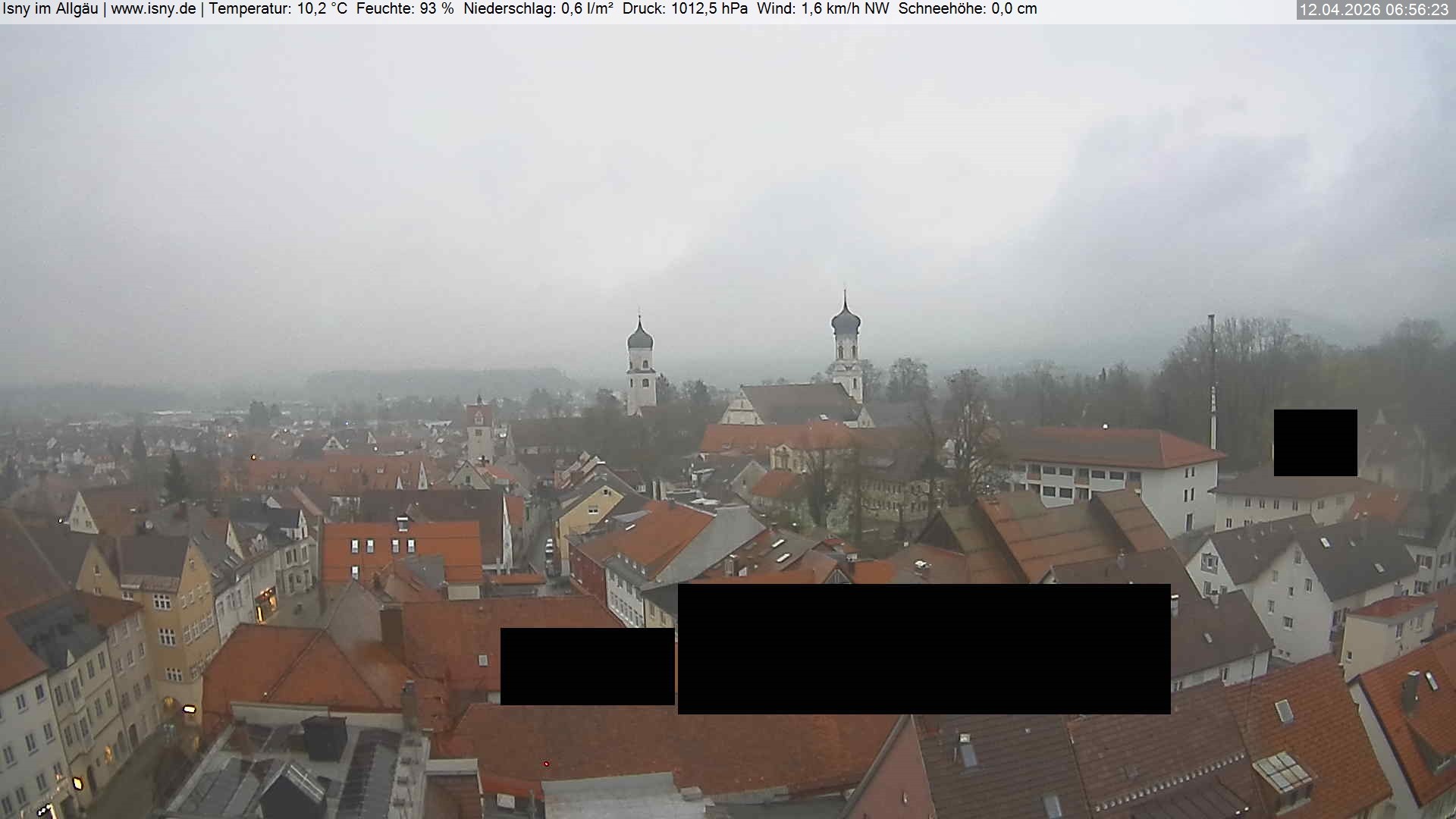 Archiviertes Webcam Bild: Isny: Wassertor und Nikolaikirche am 12.04.2026 um 07:37 Uhr 07:00