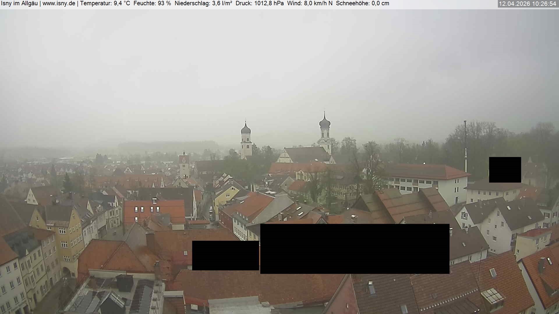 Archiviertes Webcam Bild: Isny: Wassertor und Nikolaikirche am 12.04.2026 um 10:37 Uhr 10:00