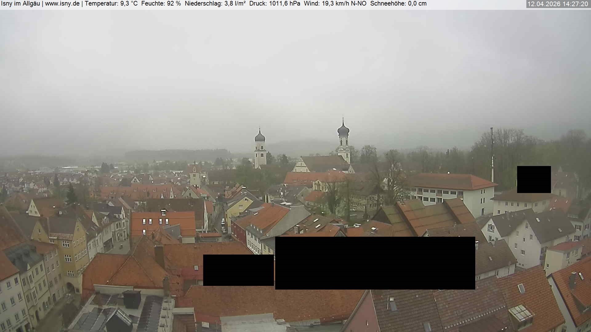 Archiviertes Webcam Bild: Isny: Wassertor und Nikolaikirche am 12.04.2026 um 12:37 Uhr 12:00