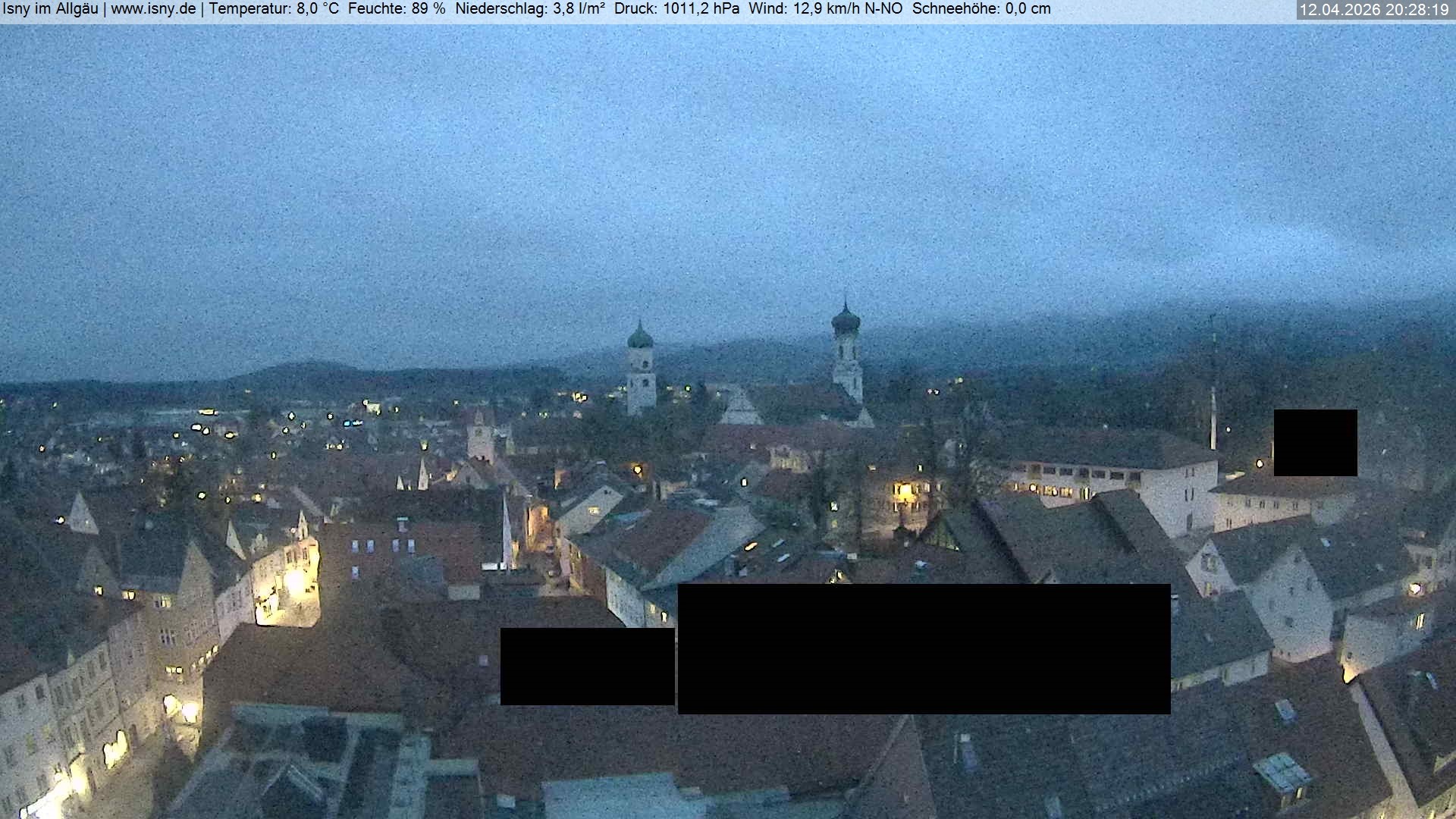Archiviertes Webcam Bild: Isny: Wassertor und Nikolaikirche am 12.04.2026 um 20:37 Uhr Aktuell