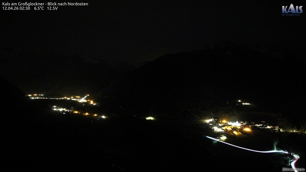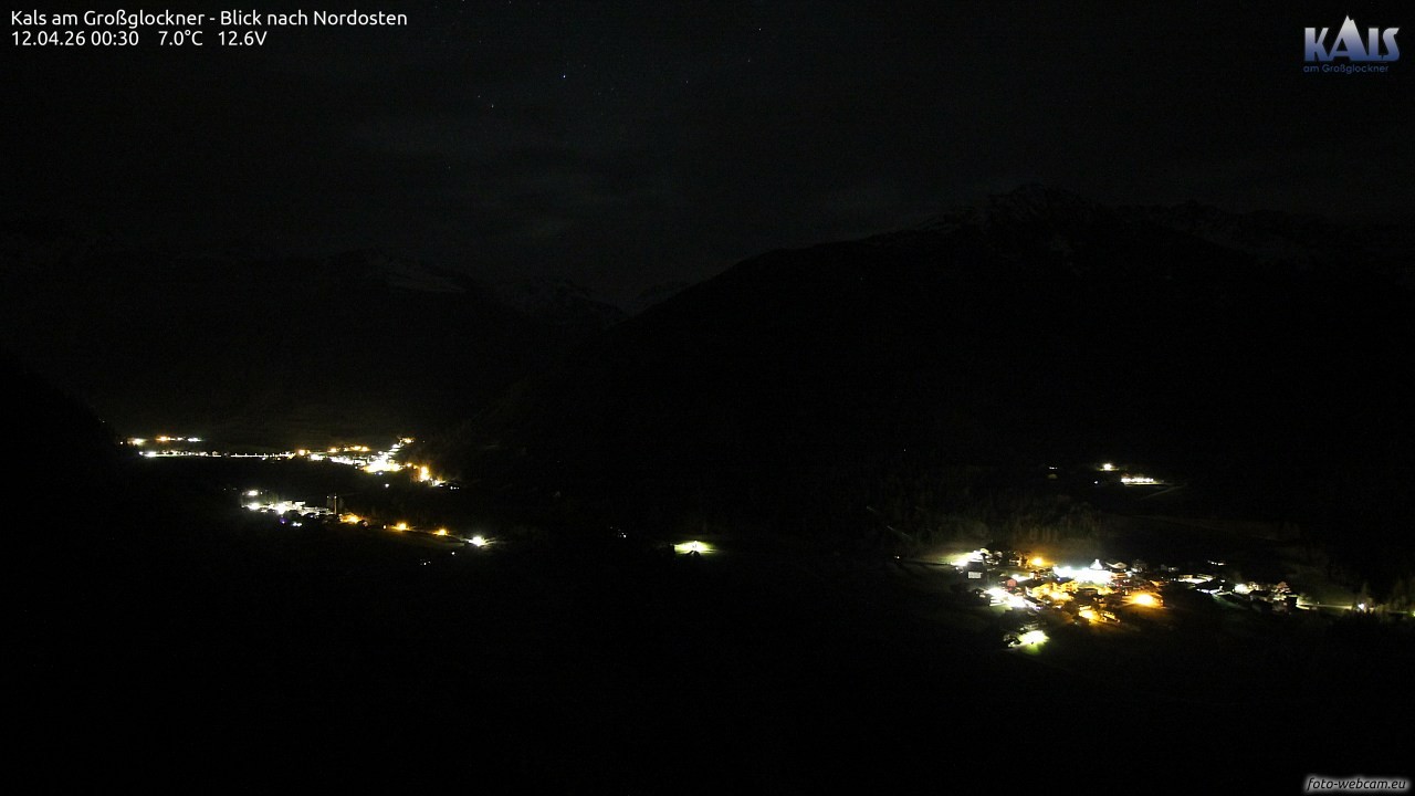 Archiviertes Webcam Bild: Kals am Großglockner - Blick nach Nordosten am 12.04.2026 um 02:06 Uhr 02:00