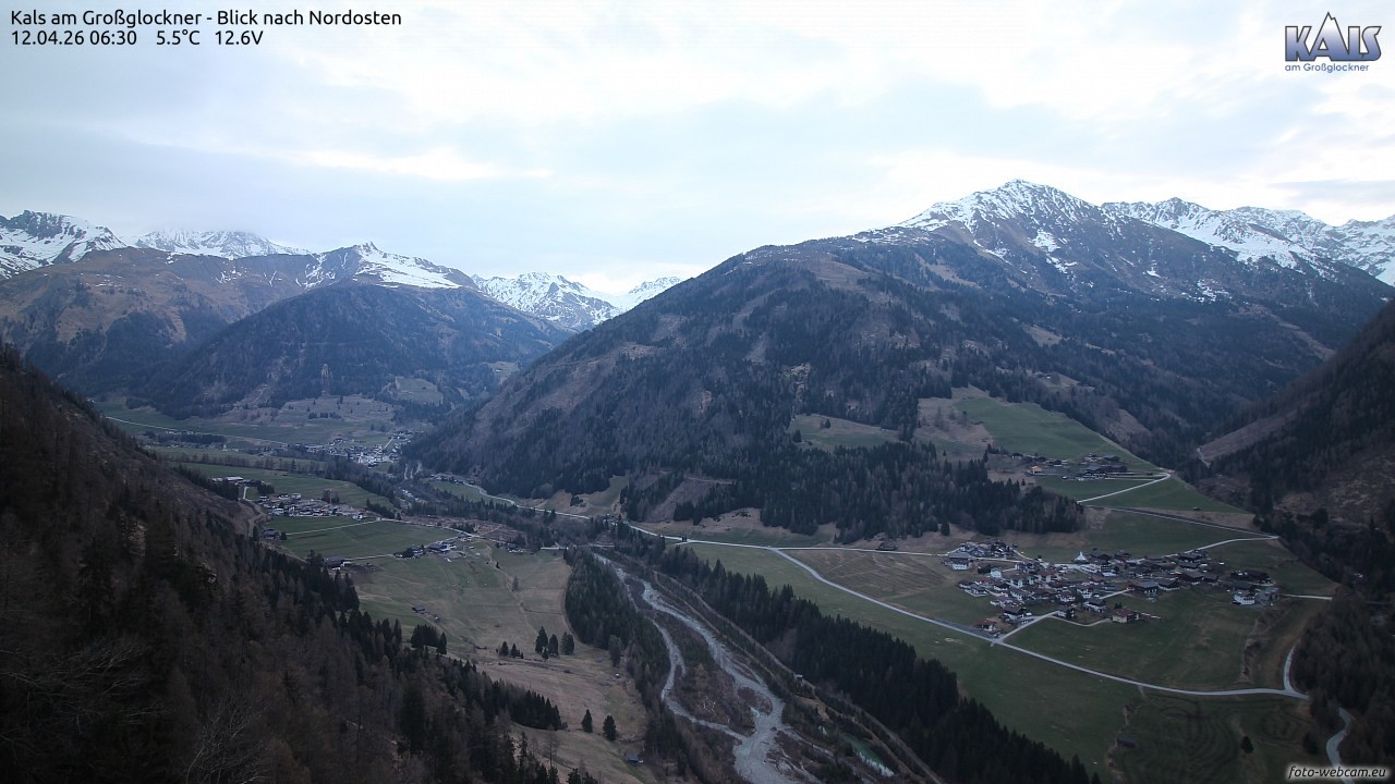 Archiviertes Webcam Bild: Kals am Großglockner - Blick nach Nordosten am 12.04.2026 um 06:06 Uhr 06:00