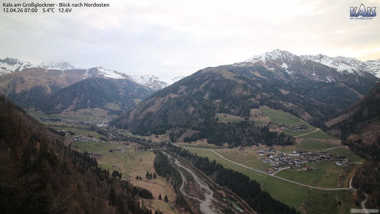 Archiviertes Webcam Bild: Kals am Großglockner - Blick nach Nordosten am 12.04.2026 um 07:06 Uhr 07:00