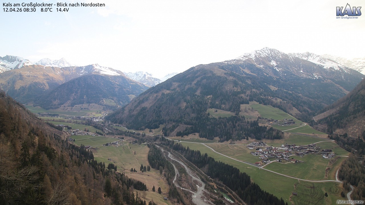 Archiviertes Webcam Bild: Kals am Großglockner - Blick nach Nordosten am 12.04.2026 um 08:06 Uhr 08:00