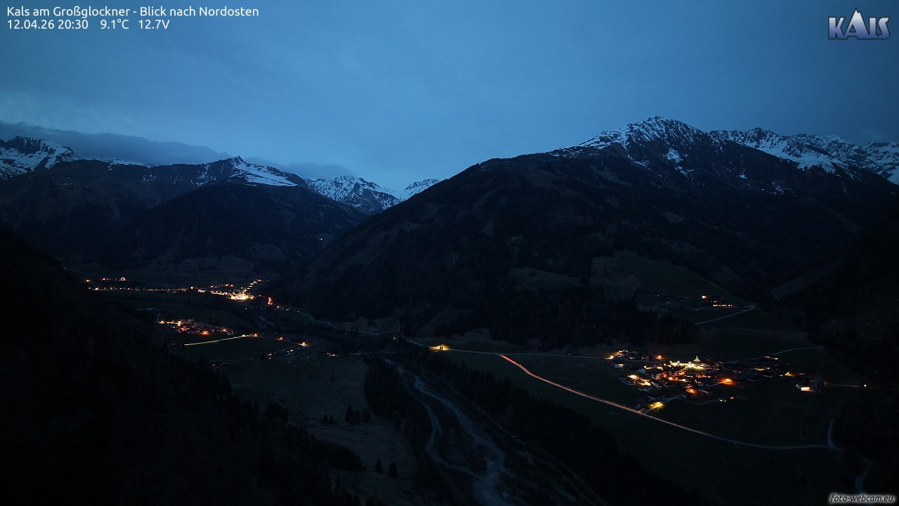 Archiviertes Webcam Bild: Kals am Großglockner - Blick nach Nordosten am 12.04.2026 um 20:06 Uhr Aktuell