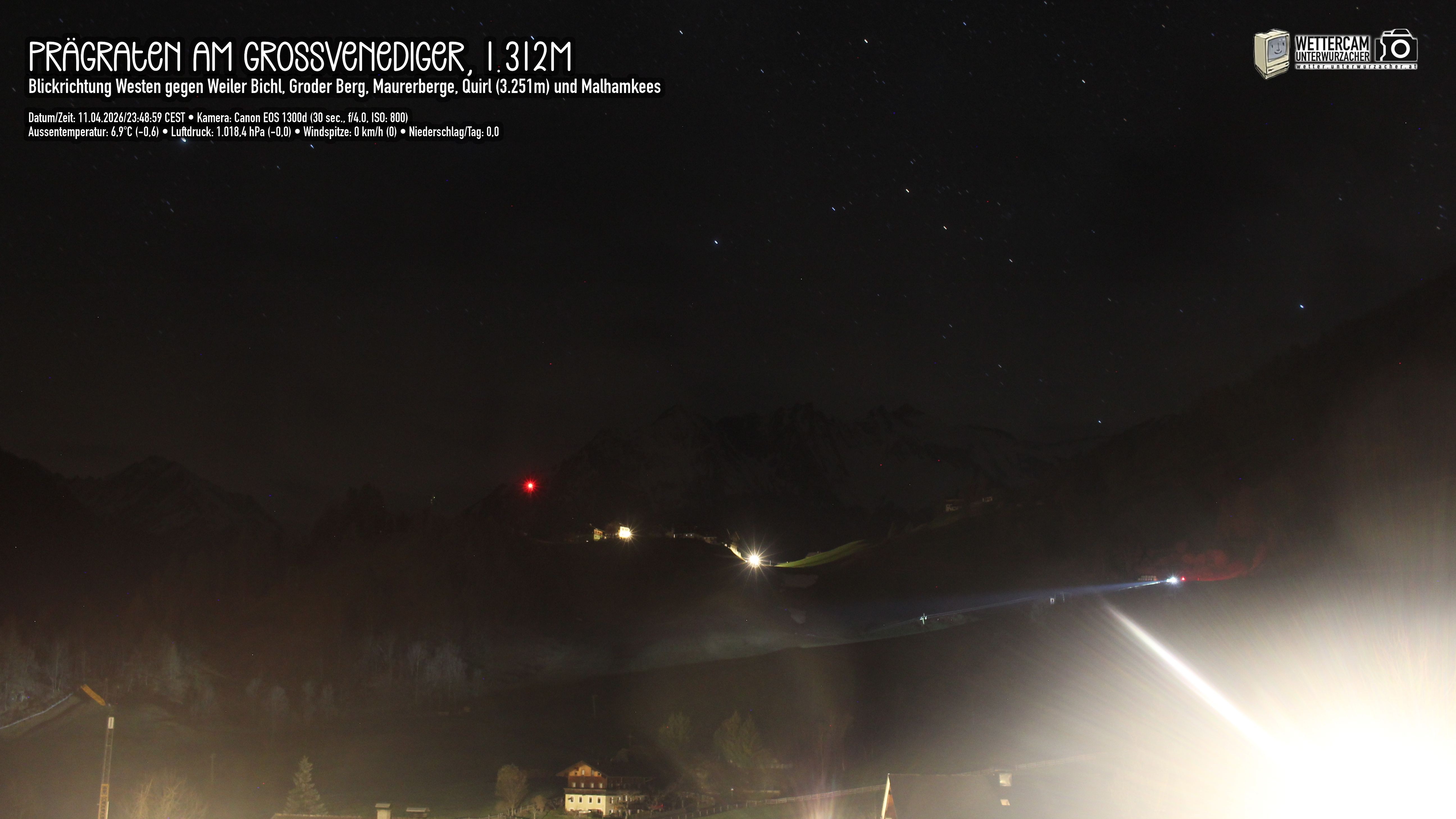 Archiviertes Webcam Bild: Prägraten am Großvenediger: Blick auf Bichl und die Maurer Berge am 12.04.2026 um 00:06 Uhr 00:00